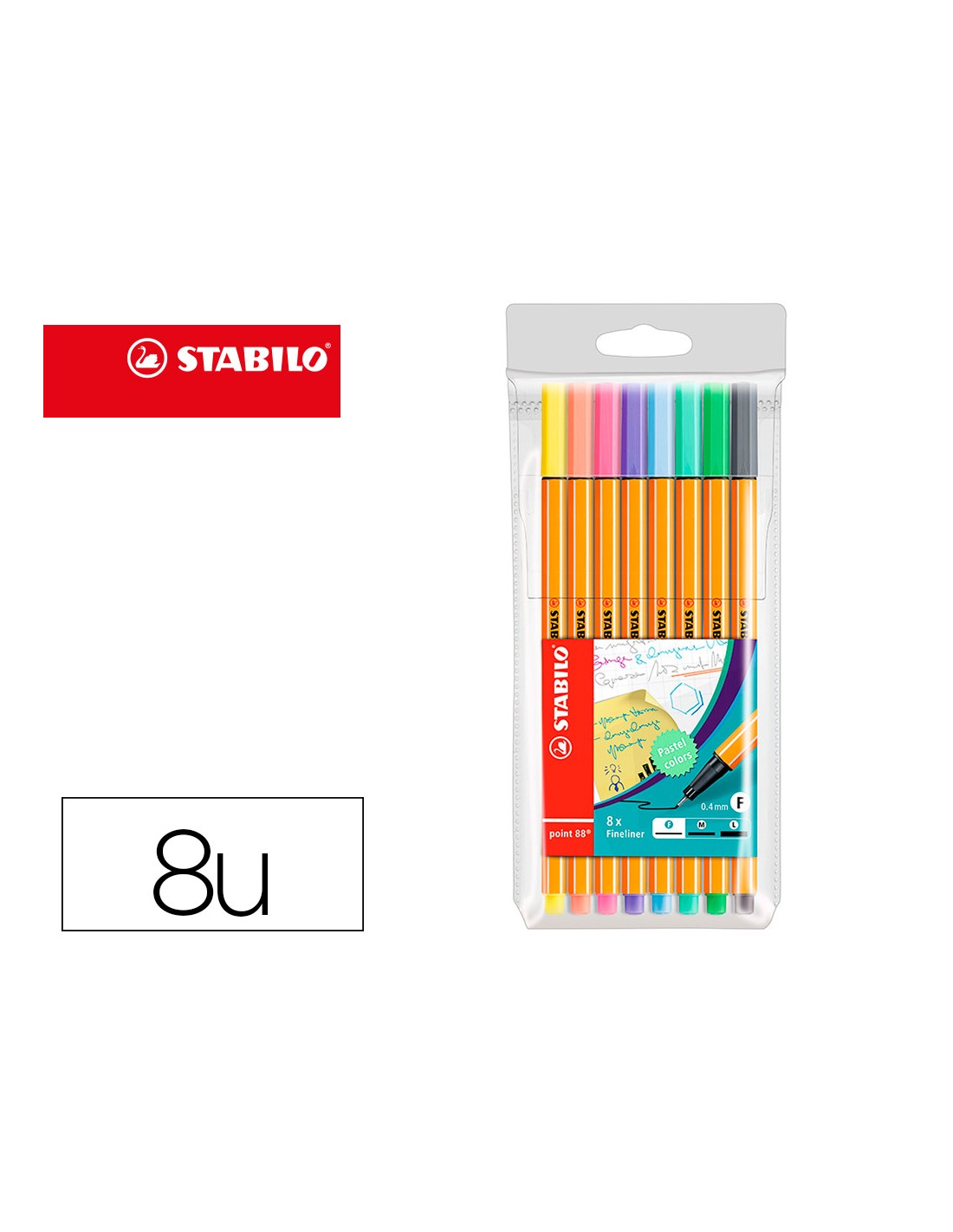 Rotulador stabilo punta de fibra point 88 estuche de 8 colores surtidos pastel
