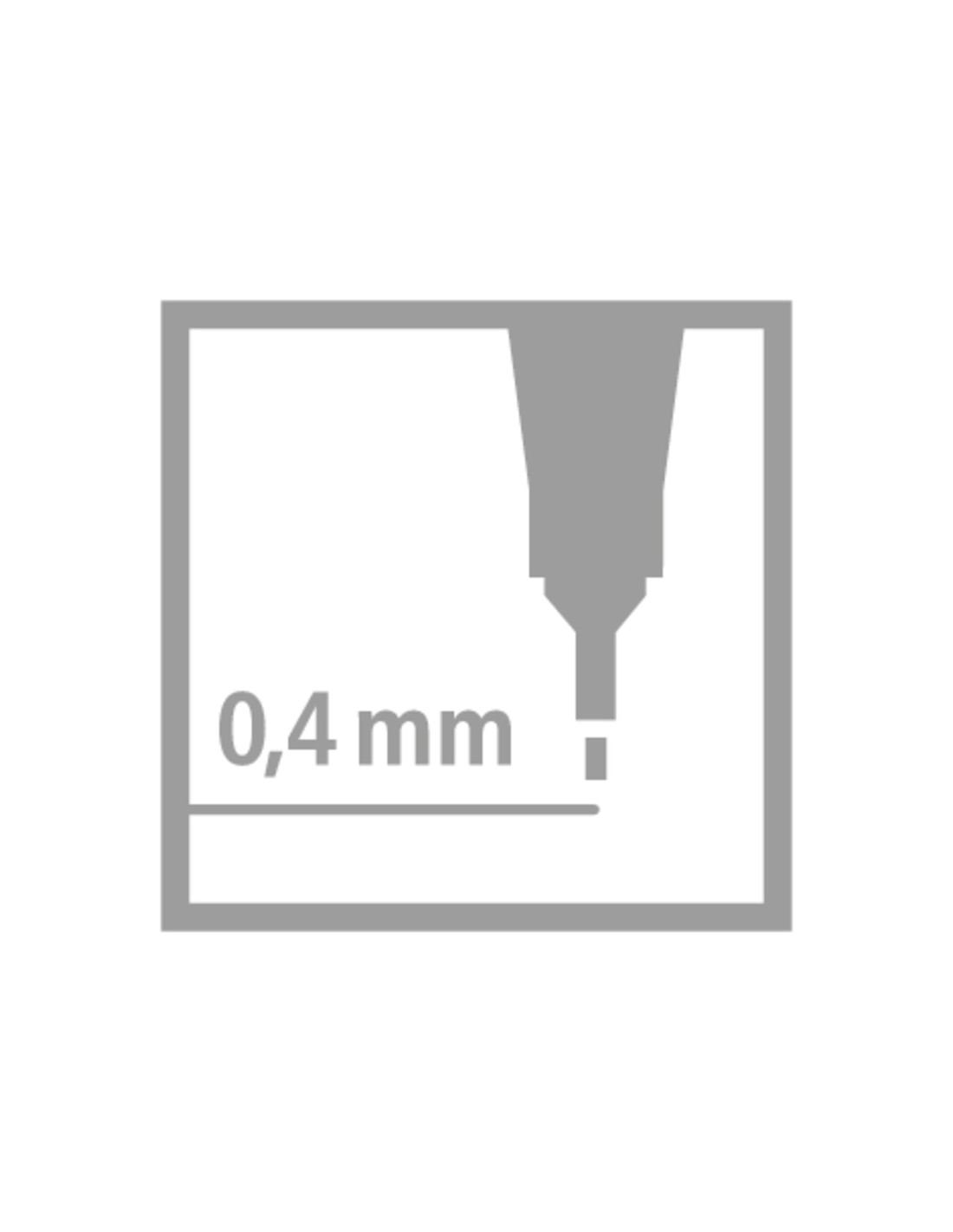 Rotulador con punta de fibra y refuerzo metálico. Formato mini del clásico. Escritura fina, apto para reglas y plantillas. Capuchón ventilado. Tinta con base de agua. Punta fina. Trazo de 0,4 mm. Incluye 18 rotuladores de colores13 estándar + 5 neón.