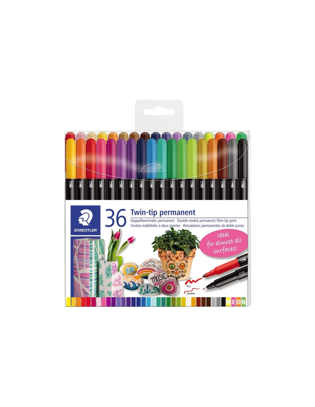Rotulador staedtler permanente doble punta 3187 estuche de 36 unidades colores surtidos