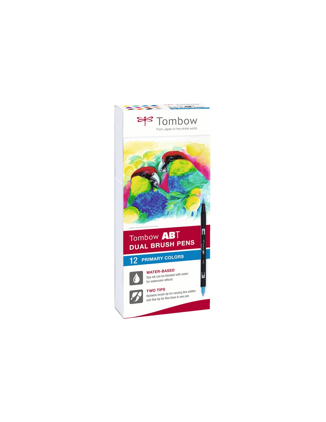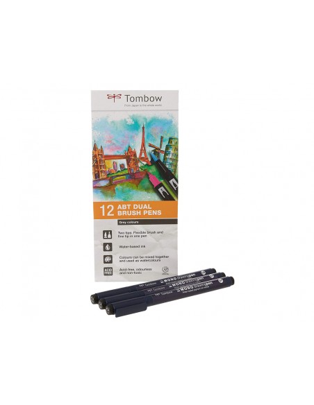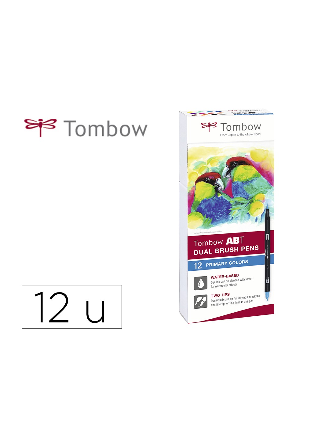 Rotulador tombow abt dual brush acuarelable doble punta fina/pincel estuche de 12 unidades colores primarios