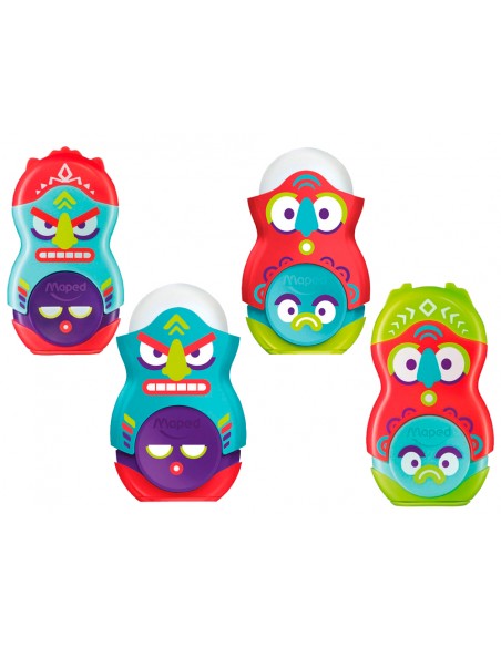 Sacapuntas maped plastico loopy totem 1 uso con goma colores surtidos decorado