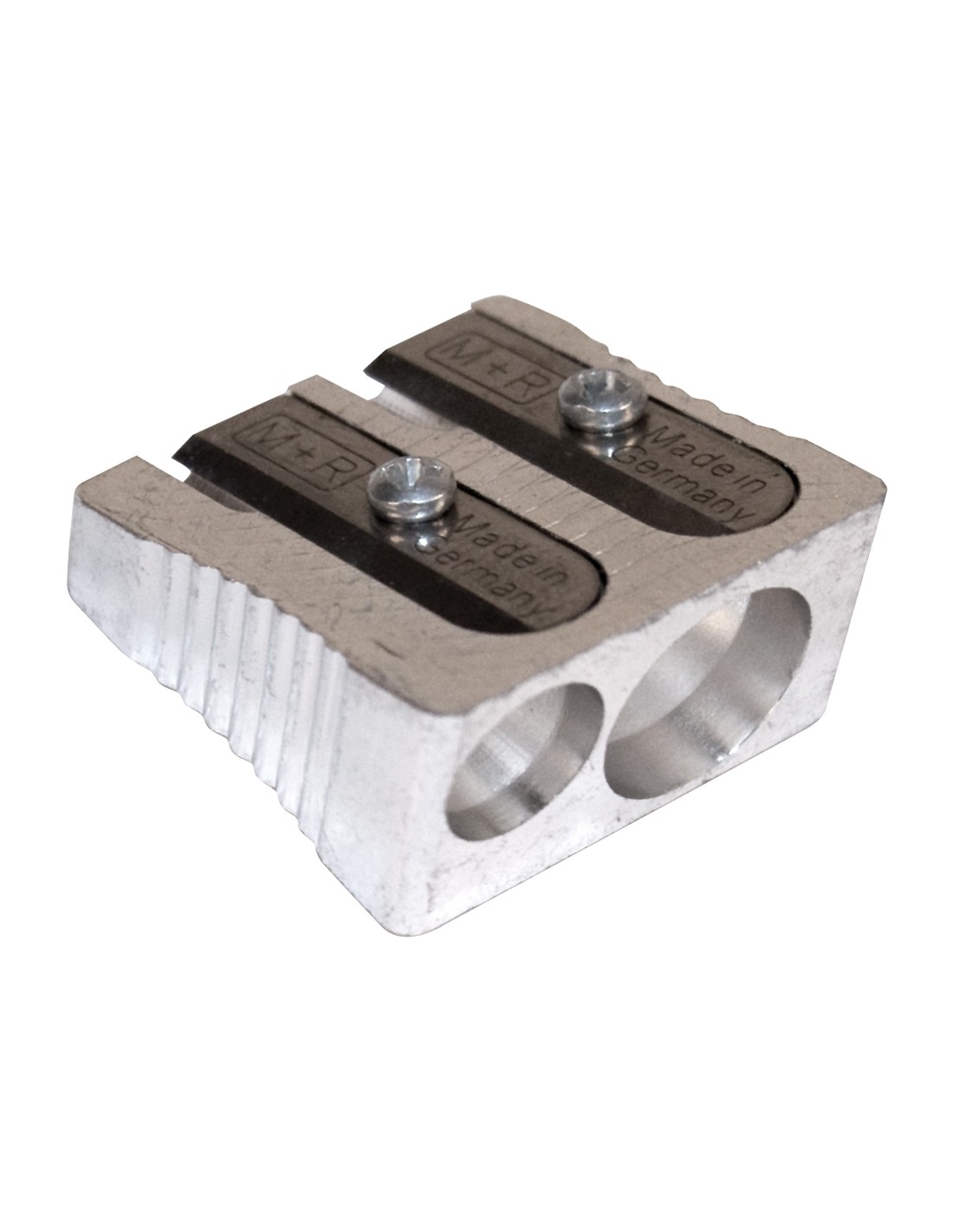 Sacapuntas de magnesio en forma de cuña. De gran robustez y resistencia. Uso escolar, oficina y hogar. Dos usos.