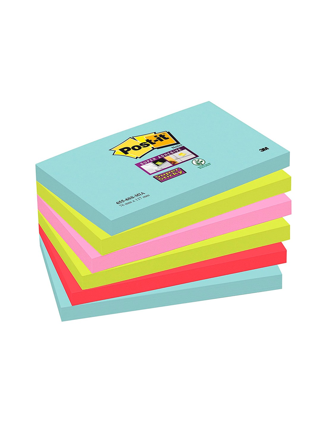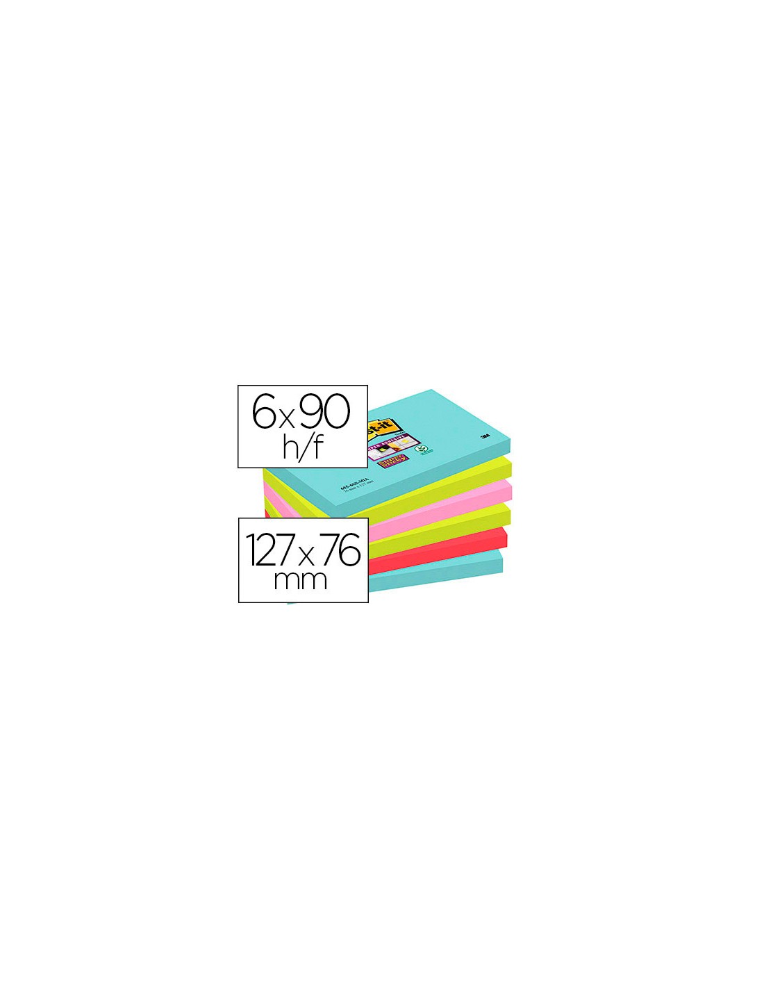 Bloc de notas adhesivas quita y pon post-it super sticky 76x127 mm con 90 hojas pack de 6 unidades colores miami