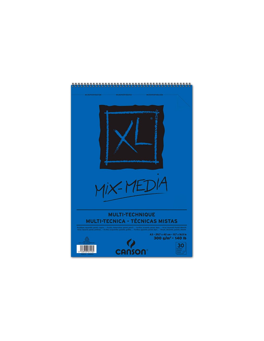 Bloc dibujo acuarela canson xl mix media grano medio din a3 microperforado espiral 29,7x42cm 30 hojas 300 gr/m2