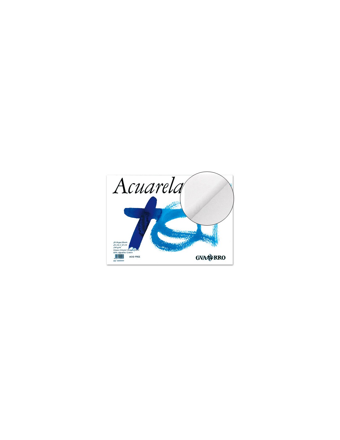 20 hojas. 240 g/m². Papel acuarela de color blanco natural con barbas a dos lados y marca al agua. Fabricado en forma redonda, posee una excelente calidad y resistencia. Permite la máxima absorción del agua. Sin recuadro.