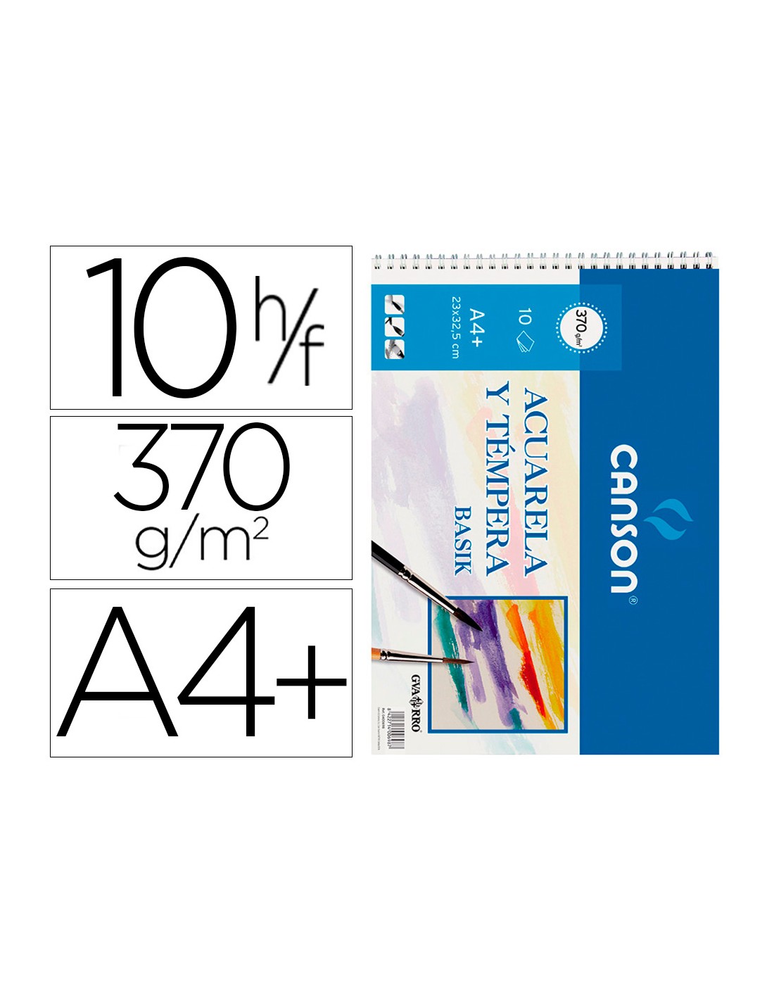 Bloc dibujo acuarela din a4 espiral 23x32.5 cm 10 hojas de 370 gr/m2