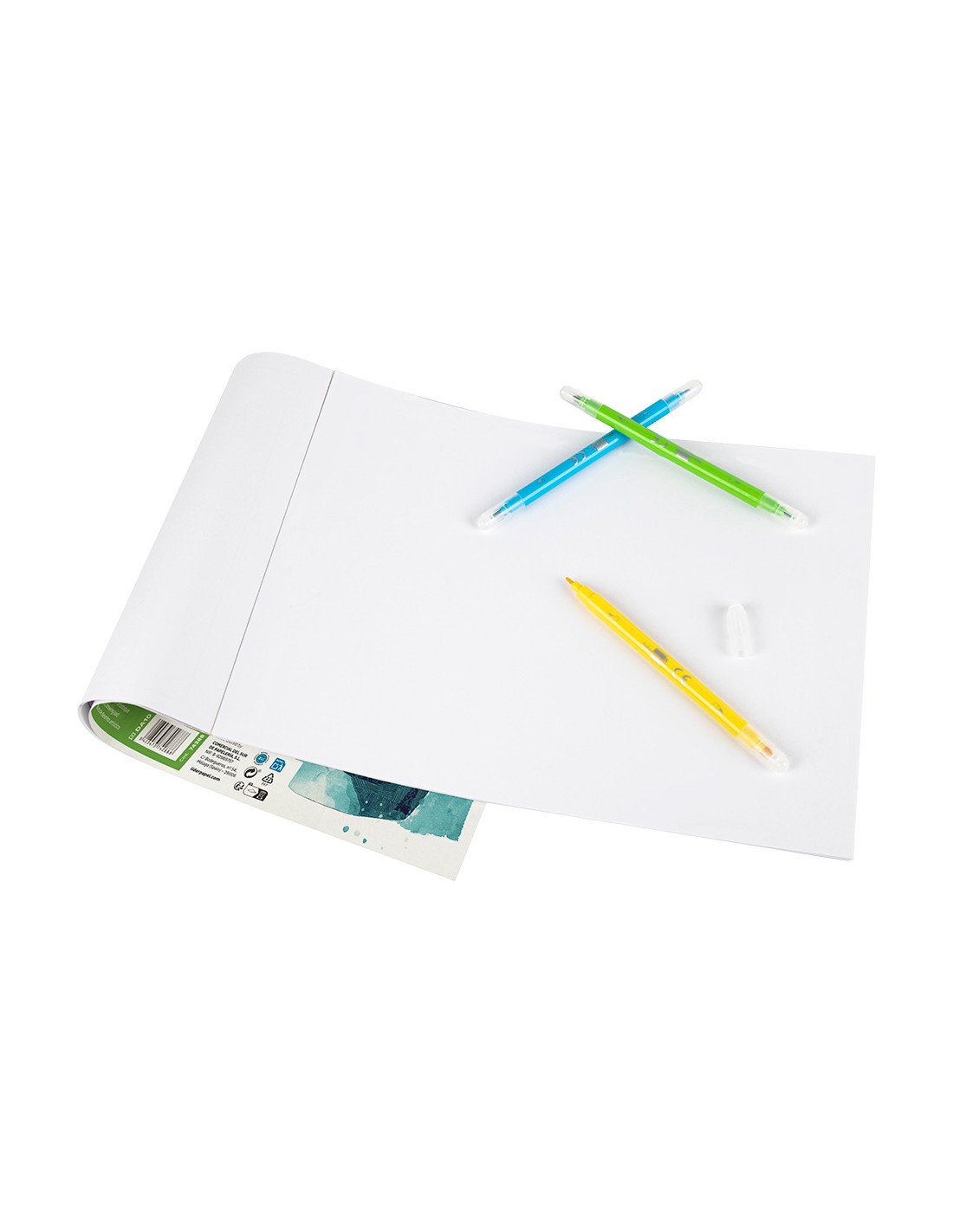 Tamaño folio. 20 hojas. 180 g/m². Papel blanco. Su cuerpo y textura lo hacen adecuado para lápiz, grafito, ceras y colores. Microperforado. Sin recuadro.