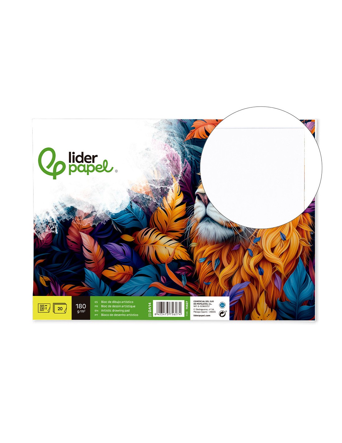LIDERPAPELBloc dibujo liderpapel artistico encolado 230x325mm 20 hojas 180 g/m2 sin recuadro