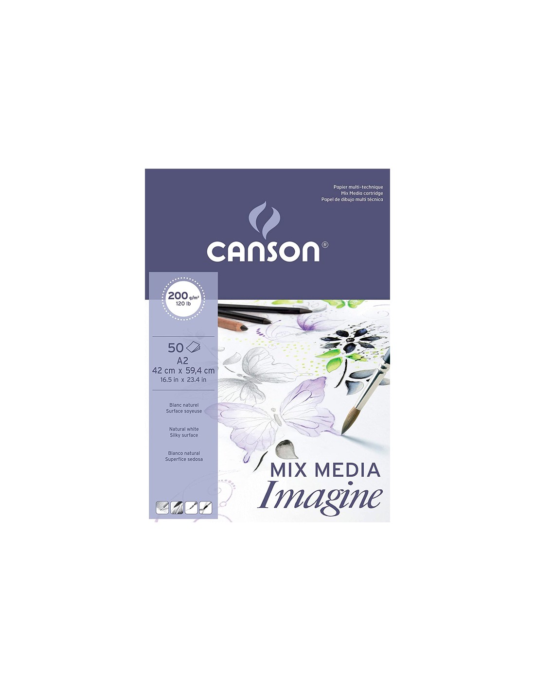 Bloc dibujo multitecnicas canson imagine din a2 encolado liso 42x59,4 cm 50 hojas 200 gr/m2