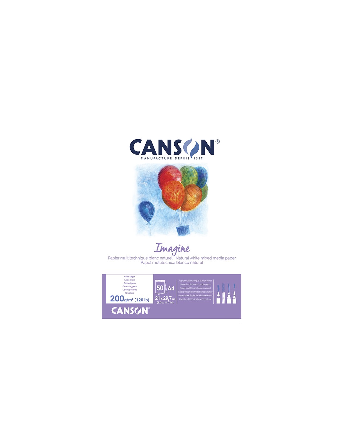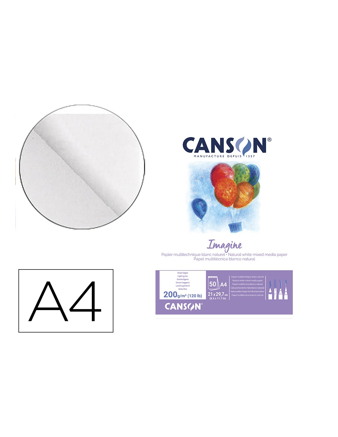 Bloc dibujo multitecnicas canson imagine din a4 encolado liso 21x29,7 cm 50 hojas 200 gr/m2
