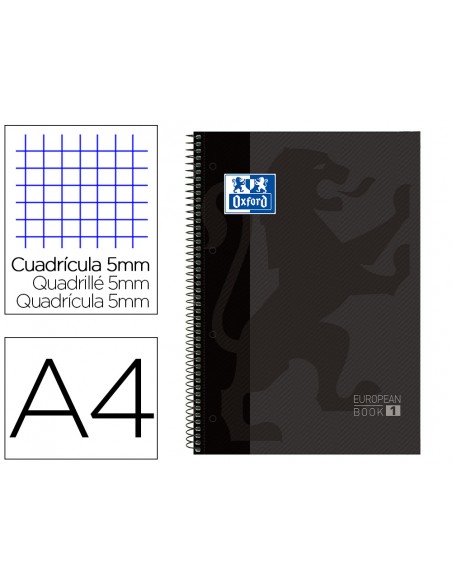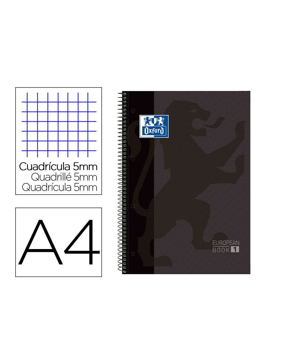 Bloc espiral oxford european book tapa extradura din a4 80 hojas cuadricula 5 mm color gris