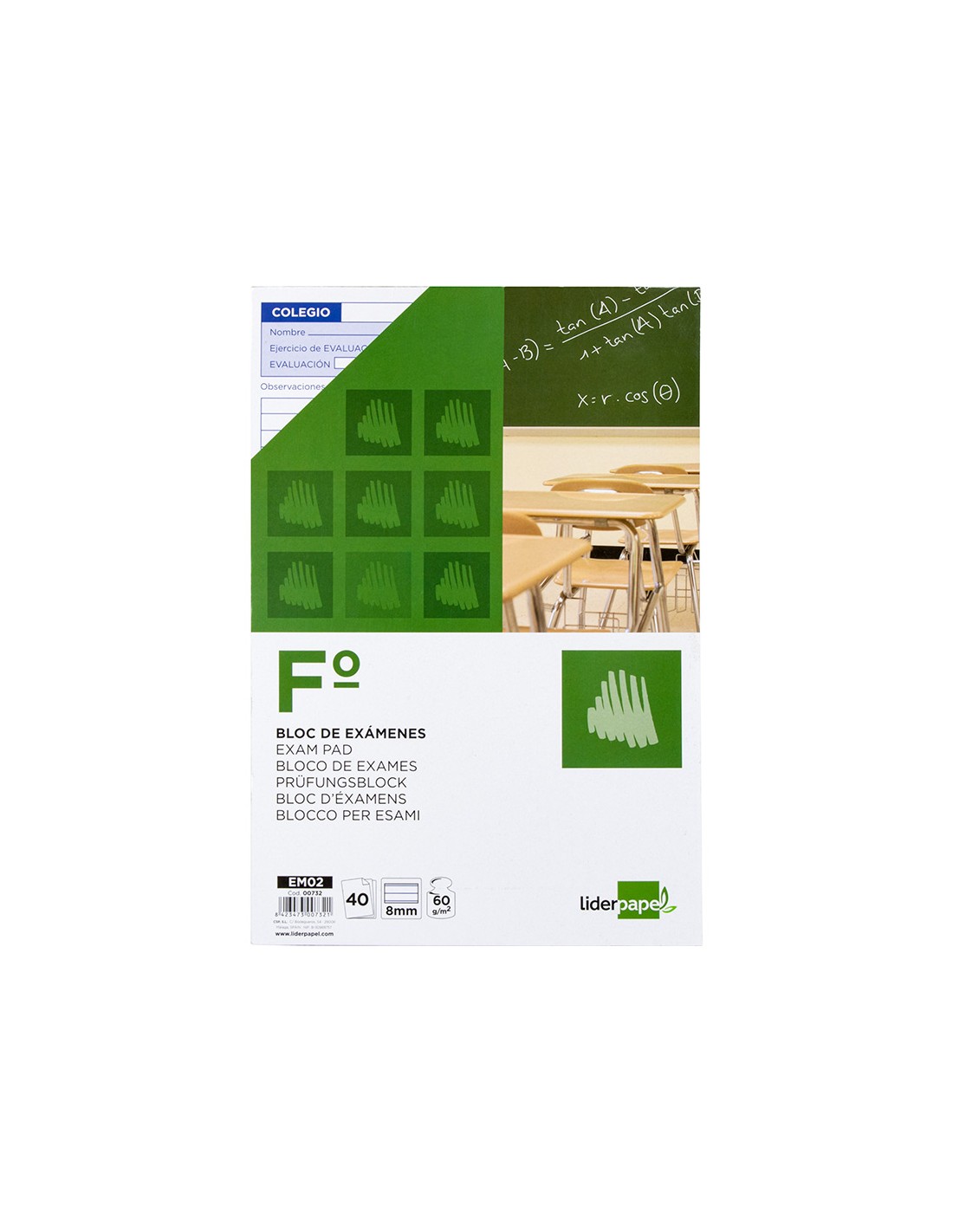 Bloc examenes liderpapel horizontal folio 40 hojas 60g/m2