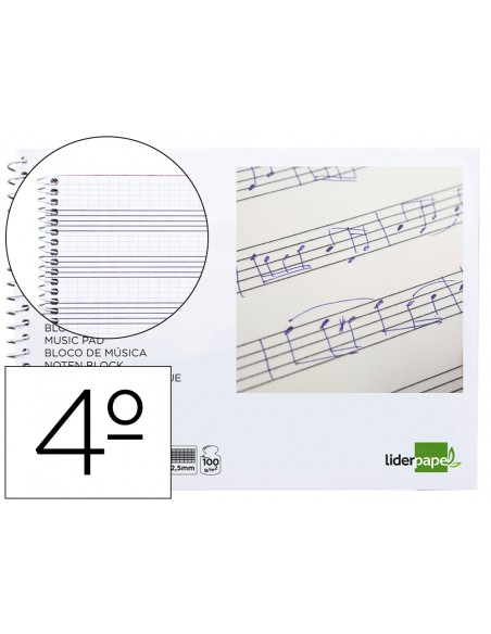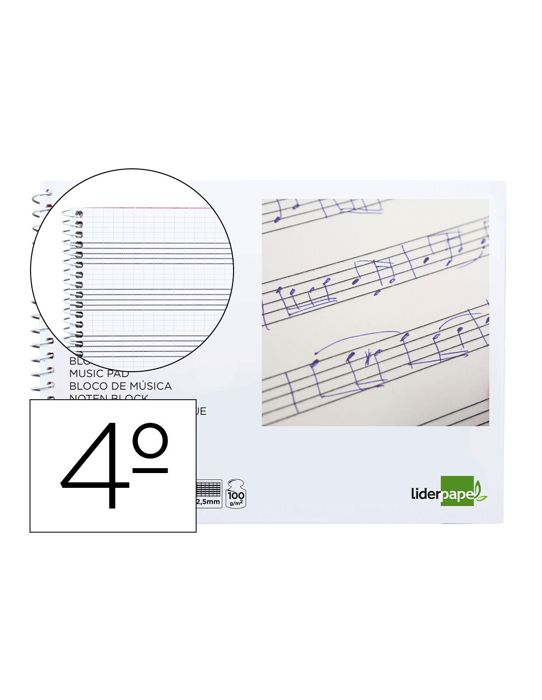Bloc musica liderpapel combi pentagrama cuadriculado 2,5mm cuarto 20 hojas 100g/m2