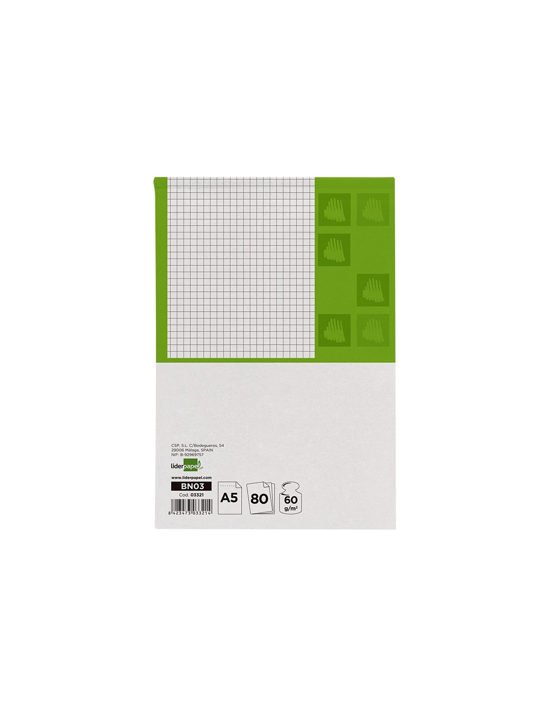 LIDERPAPELBloc notas liderpapel cuadro 4mm a5 80 hojas 60g/m2 perforado
