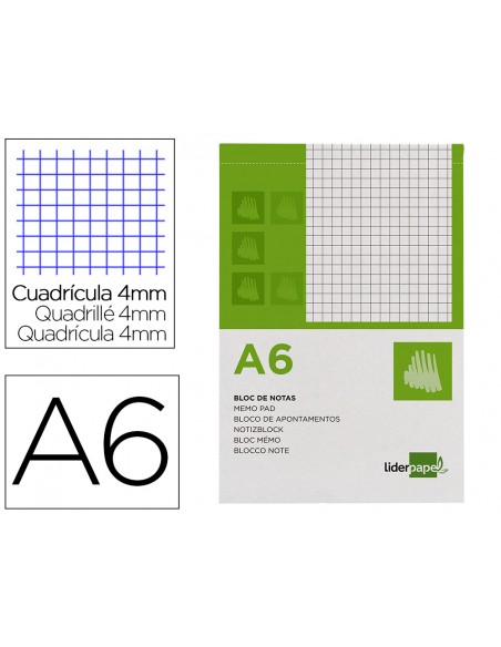 LIDERPAPELBloc notas liderpapel cuadro 4mm a6 80 hojas 60g/m2 perforado