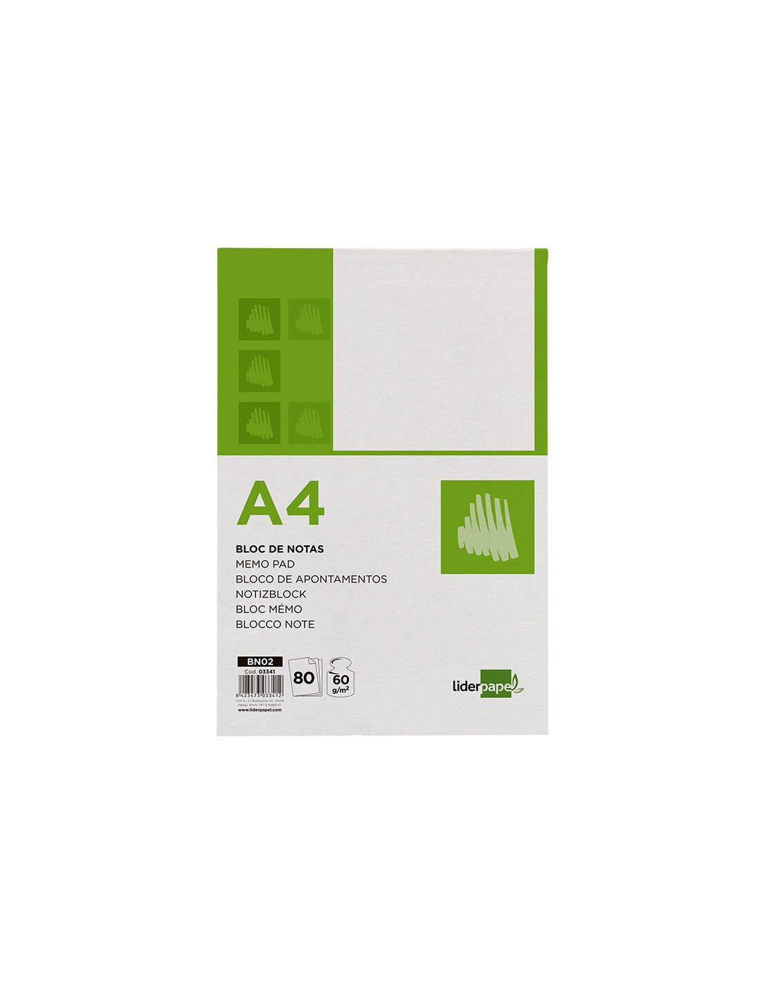 Bloc notas liderpapel liso a4 80 hojas 60g/m2