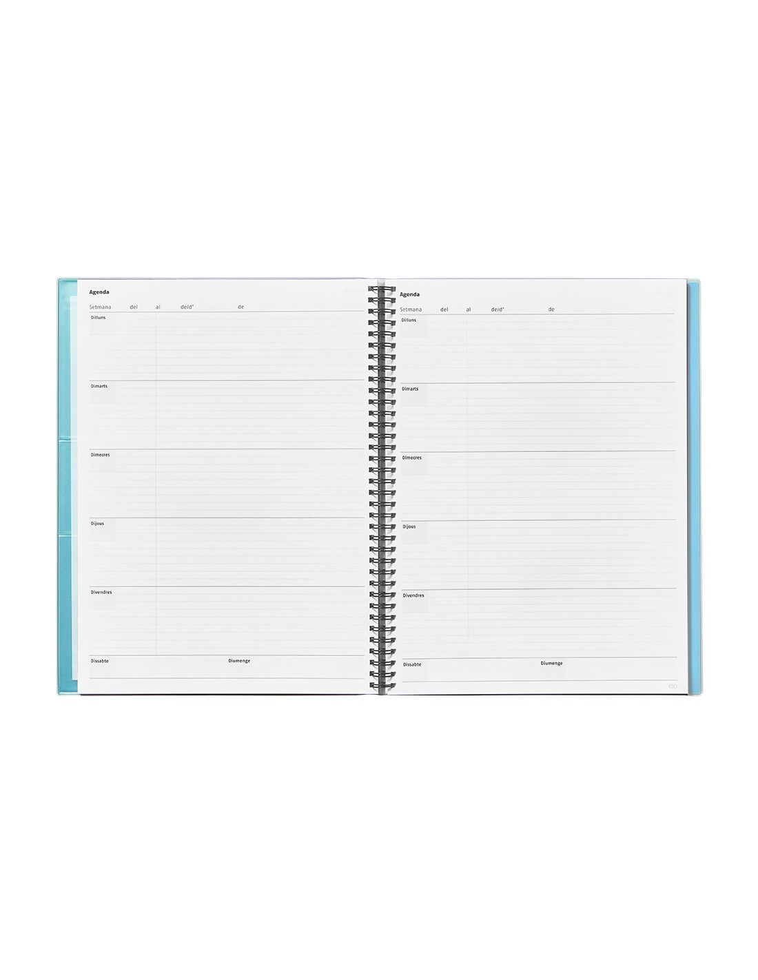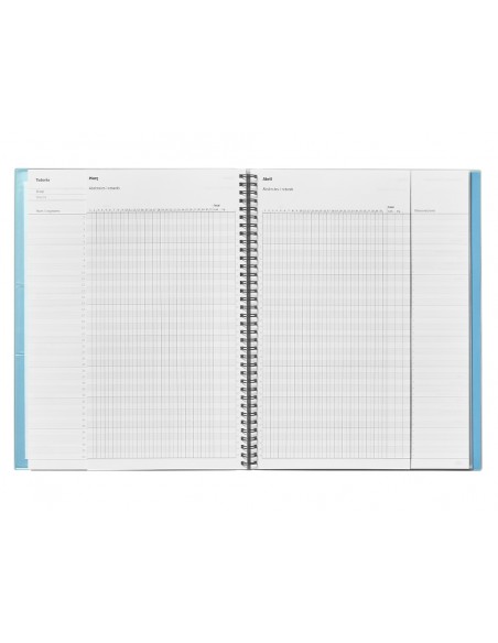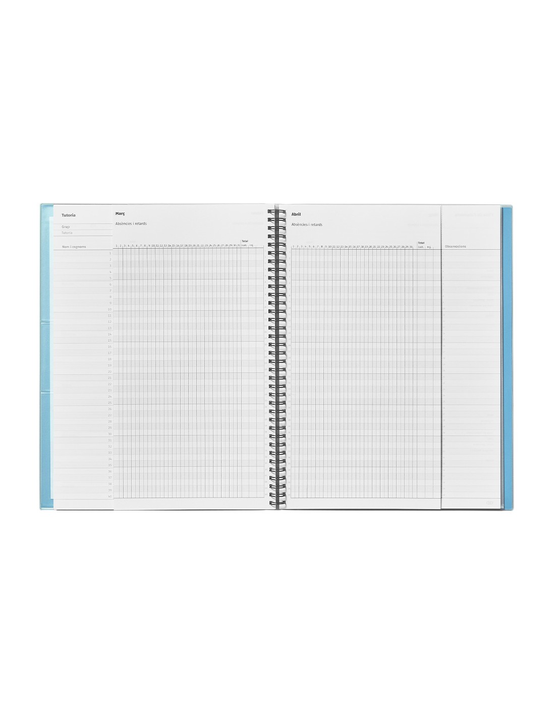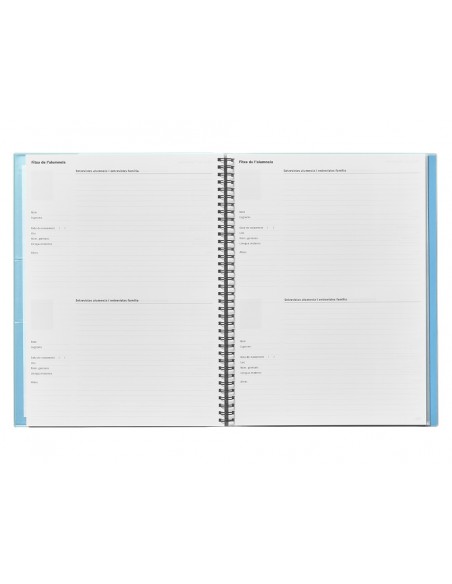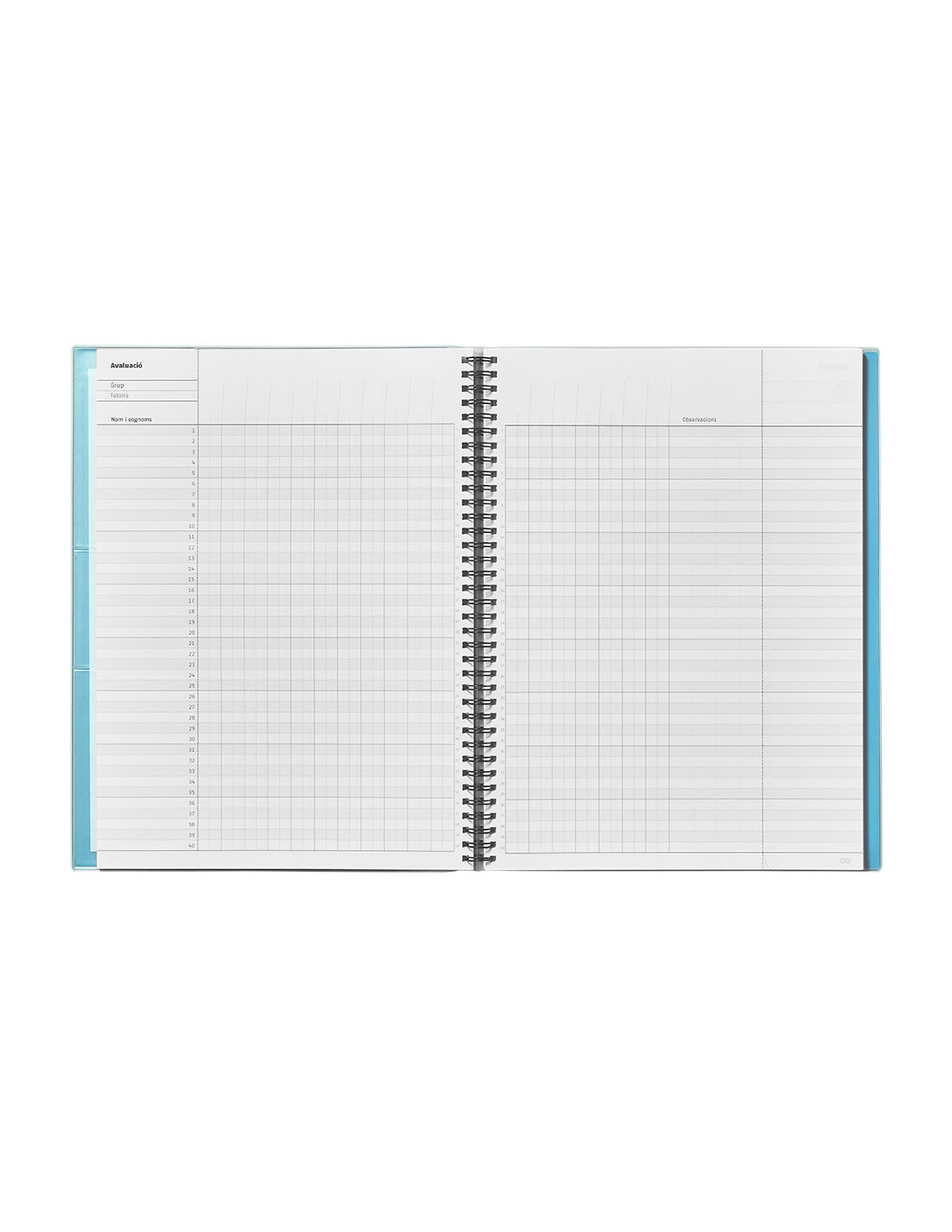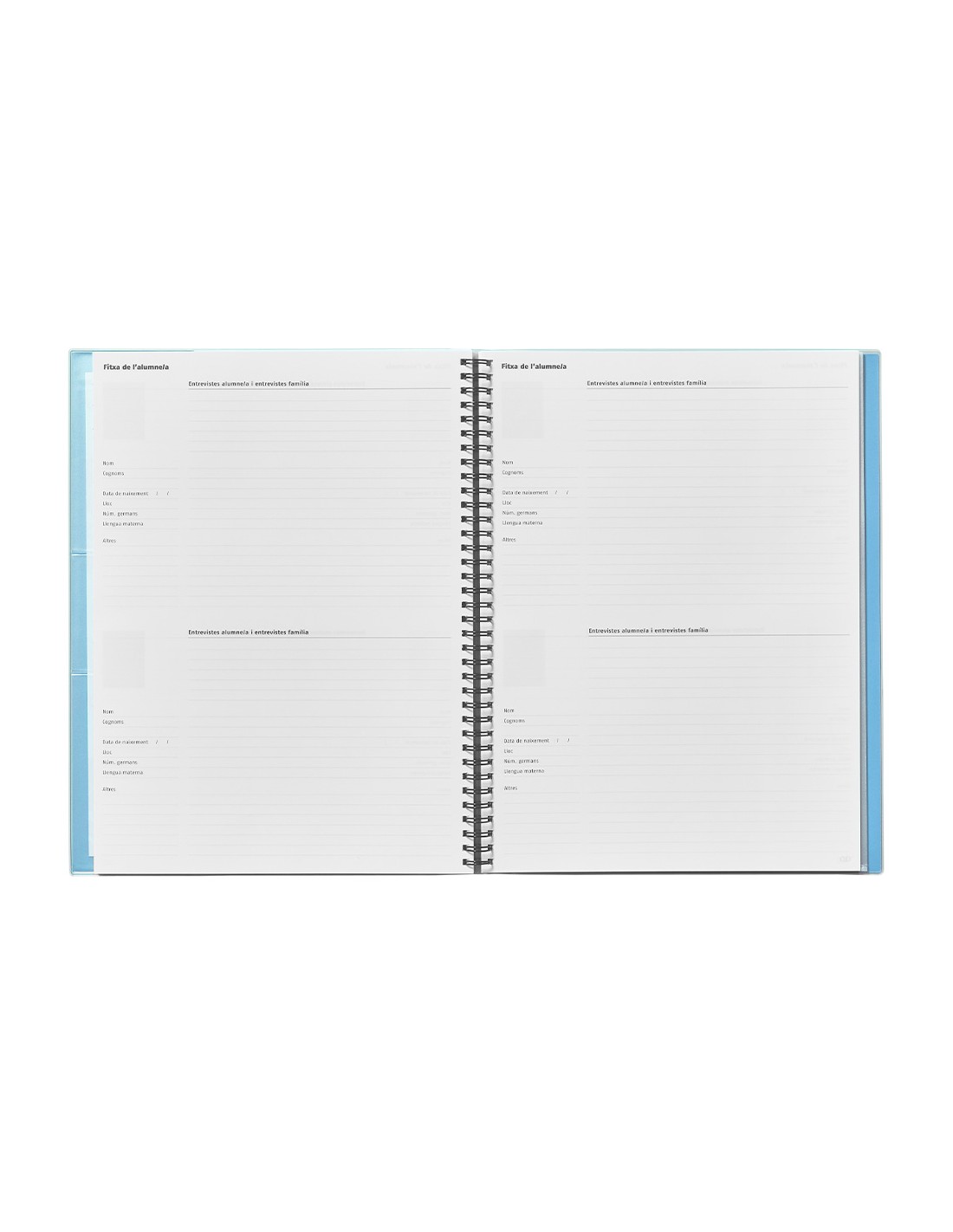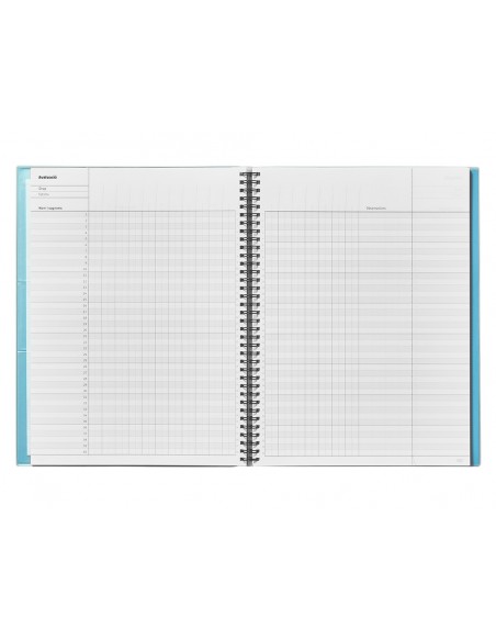 Bloc para la planificación, la organización de las actividades y la evaluación del alumnado. Tríplex, 3 funciones ideal evaluación continua, agenda/plan semanal y tutoría. Contenido datos personales y horario, plan mensual del curso, evaluación continua, agenda-plan semanal, tutoría con datos personales y familiares de los alumnos, entrevistas, reuniones, anotaciones, webs de interés, direcciones y teléfonos. Incluye Wire-o y fundas de polipropileno transparente, calendario y etiquetas autoadhesivas para la lista de alumnos. Con encuadernación de espiral doble. Colores surtidos. Medidas 22,5 x 31 cm.