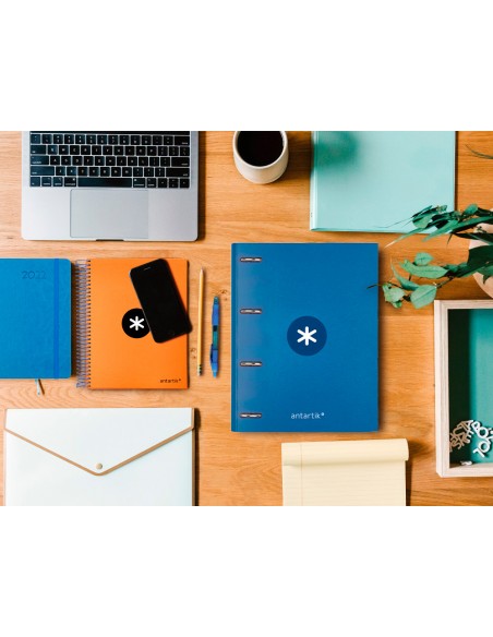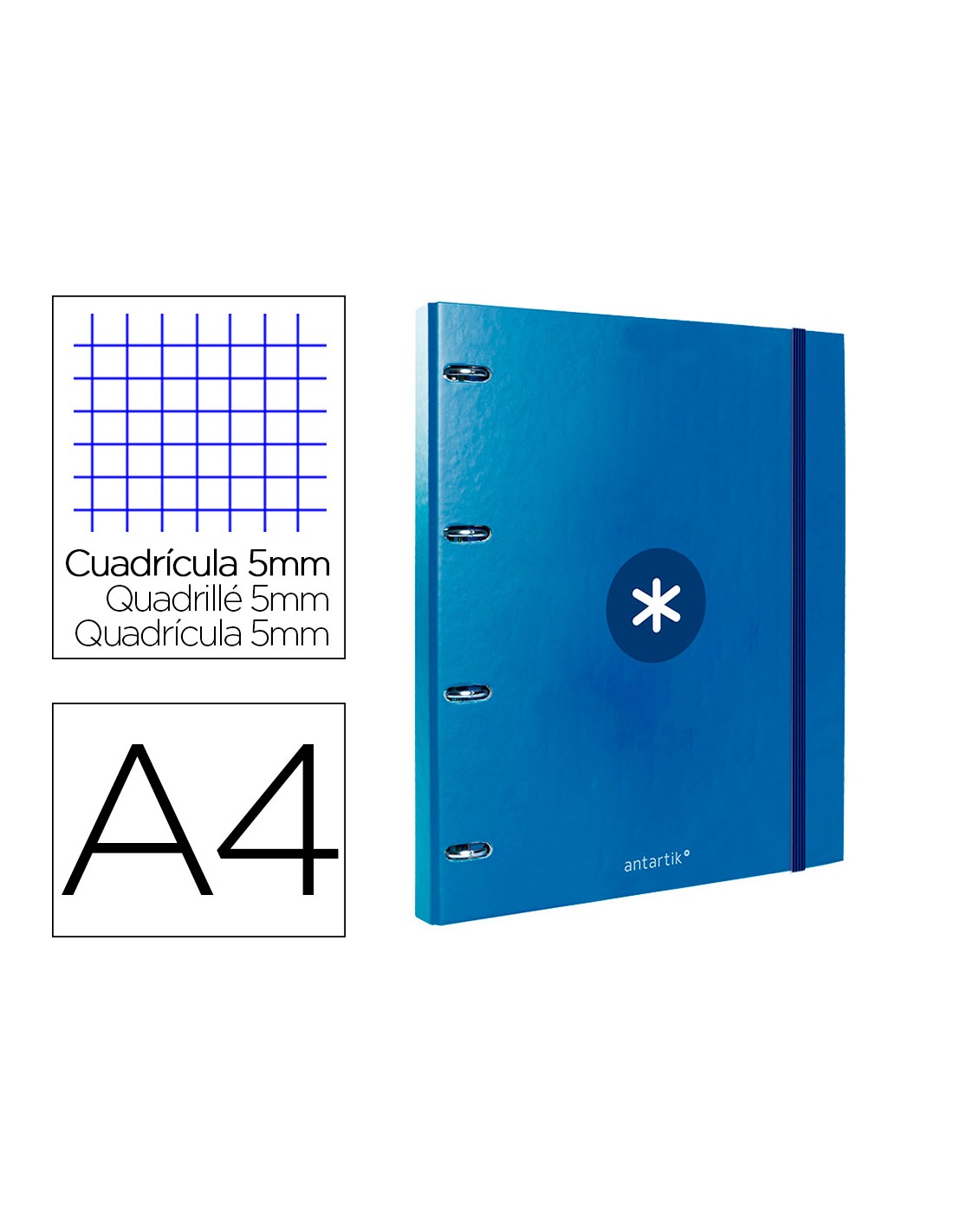 Carpeta con recambio antartik a4 cuadro 5mm forrada 4 anillas 25mm redondas color azul marino
