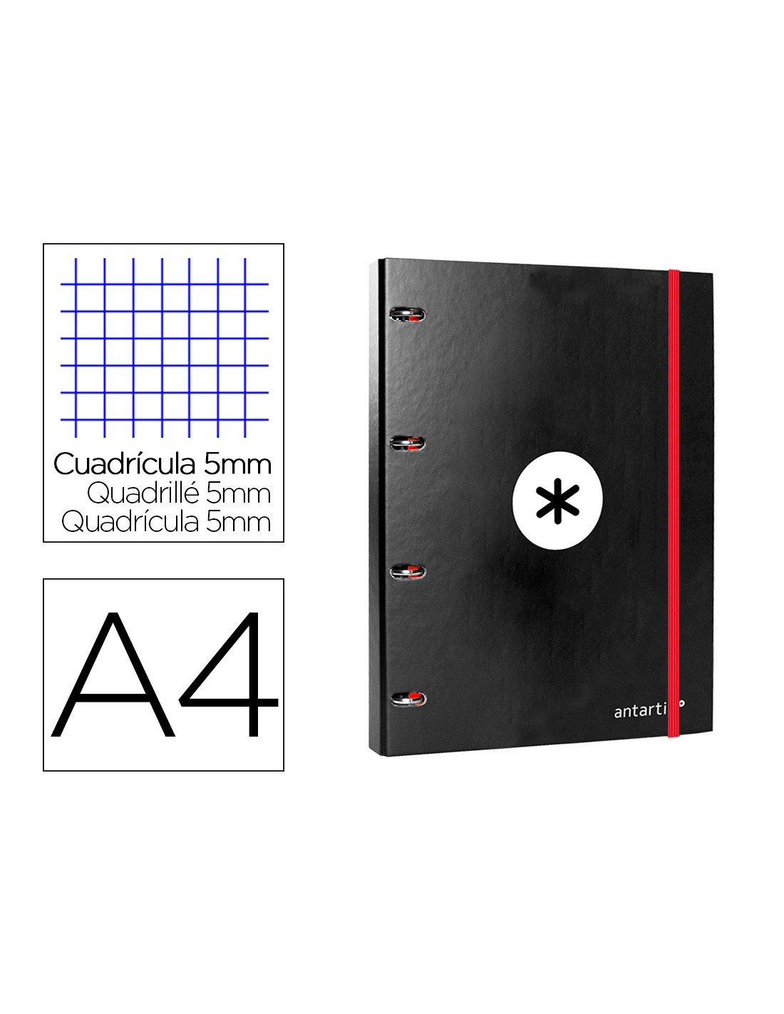 Carpeta con recambio antartik a4 cuadro 5mm forrada 4 anillas 25mm redondas color negro