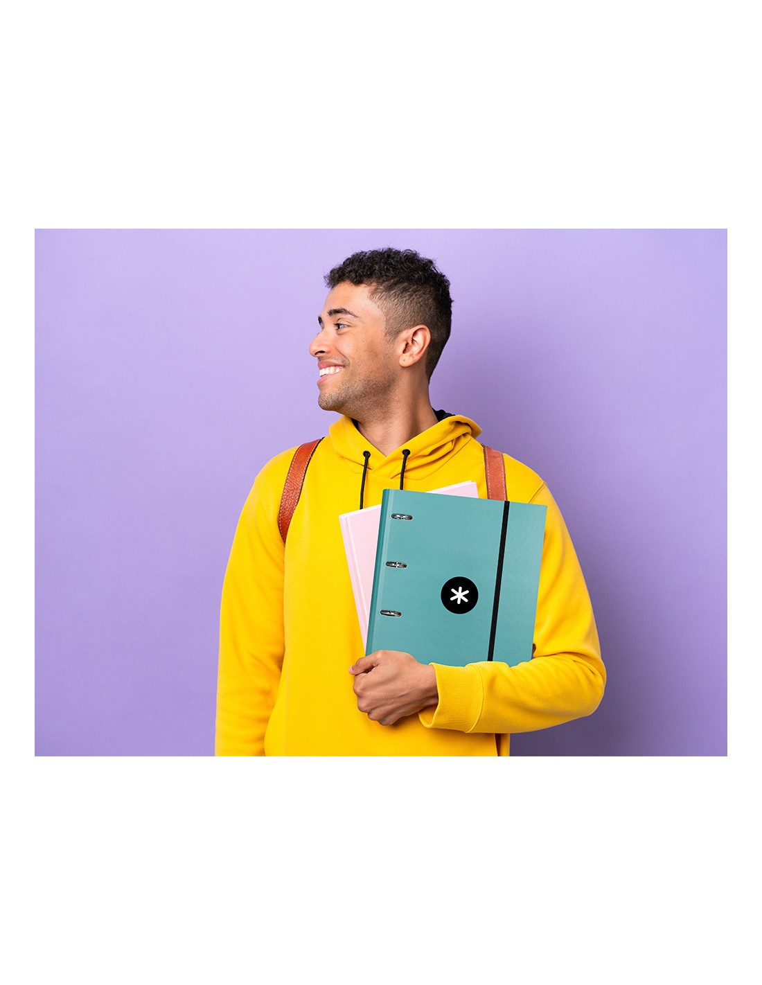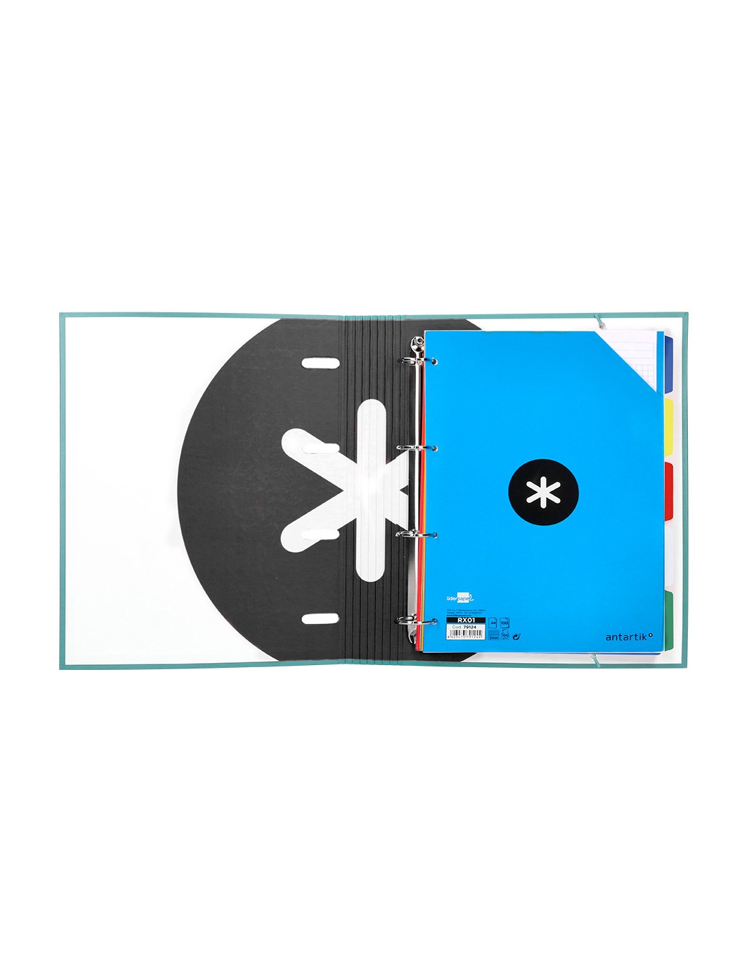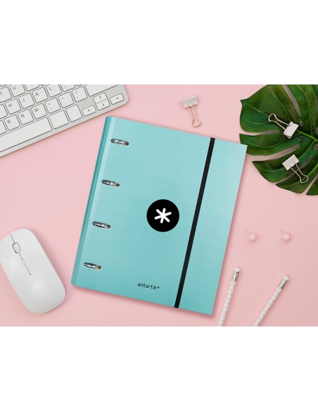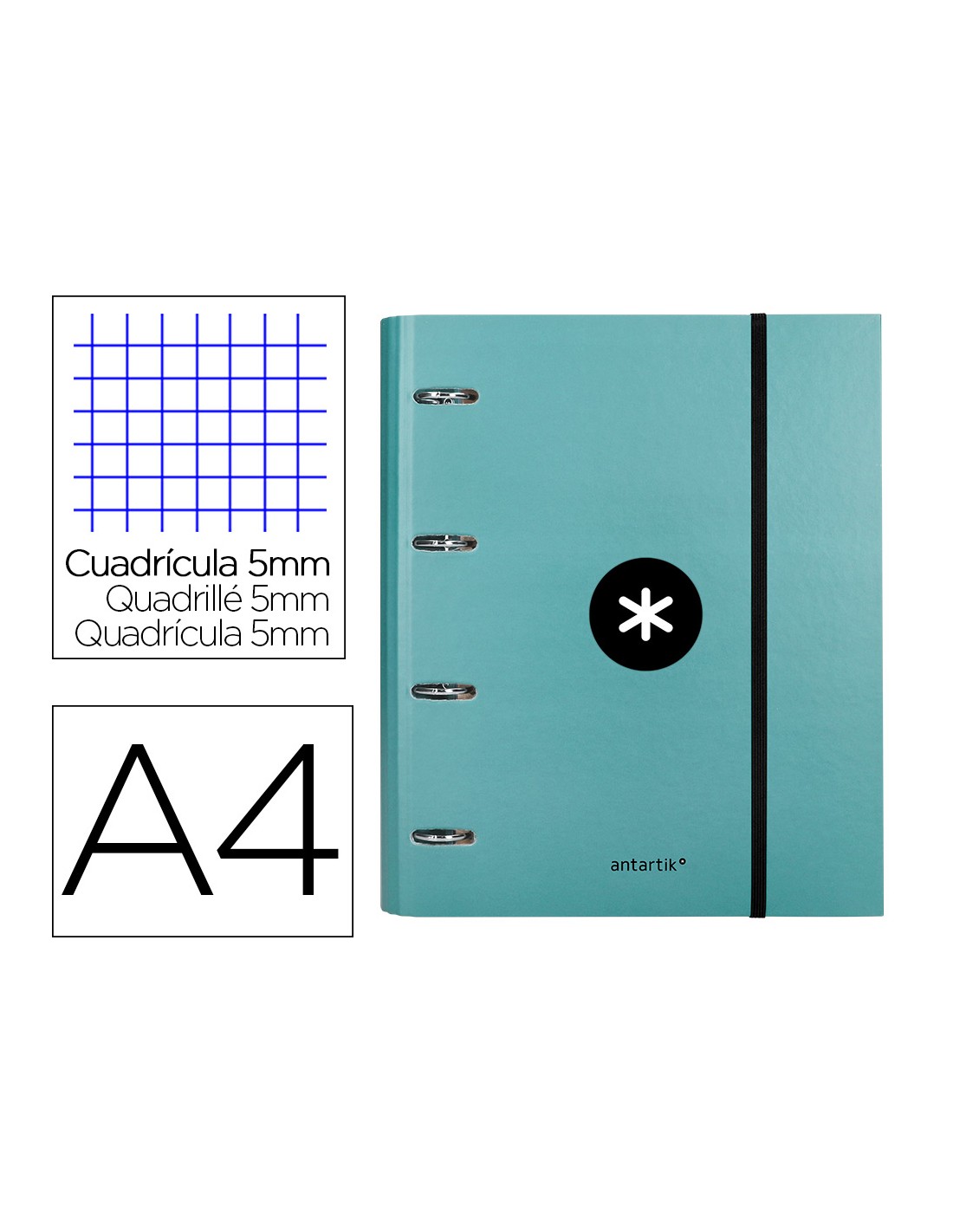 Carpeta con recambio antartik a4 cuadro 5mm forrada 4 anillas 40mm redondas con solapa color menta