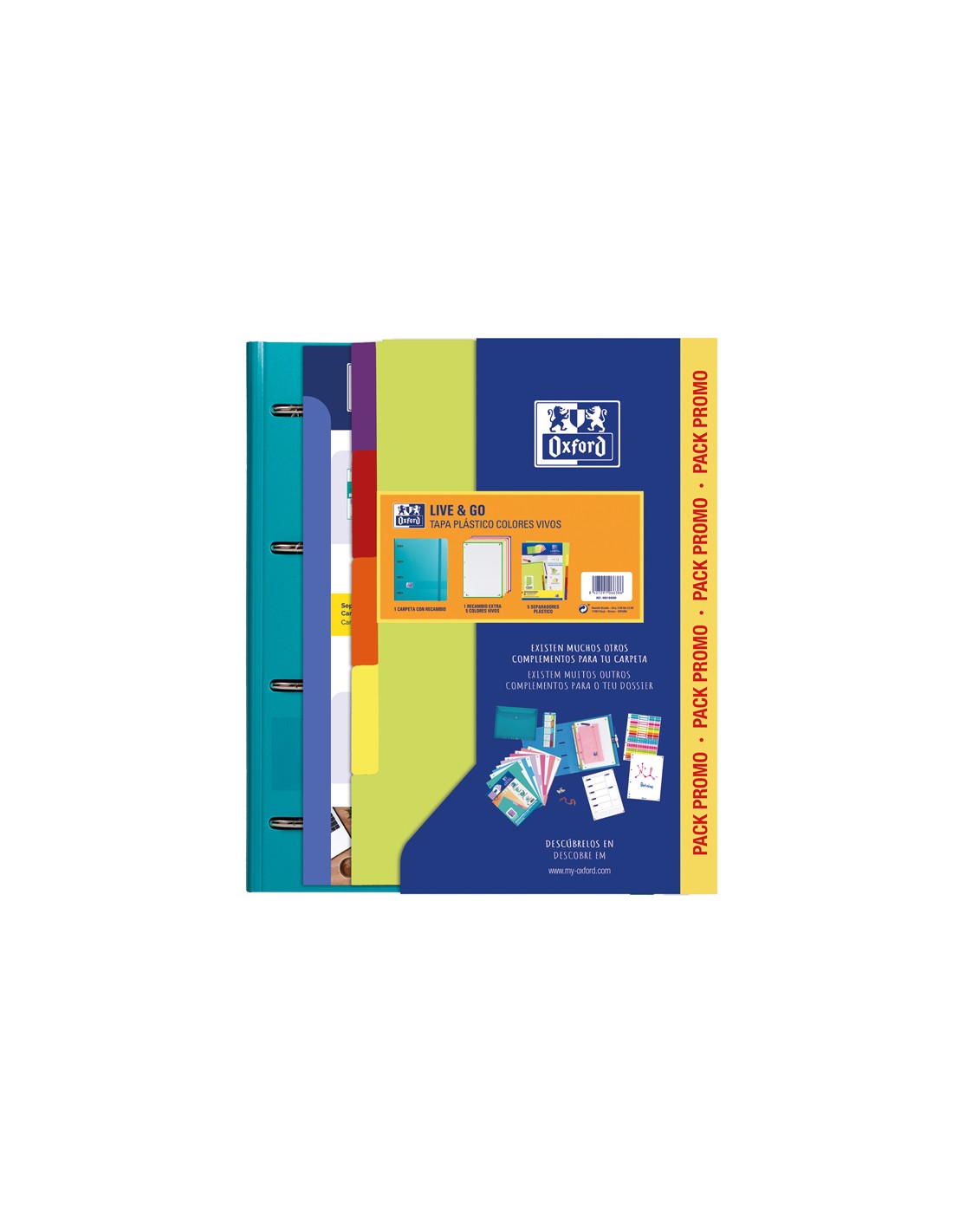 Carpeta con recambio oxford ebinder l&g vivos din a4+ 4 anillas 35 mm recambio 80 h cuadro 5 mm + juego 5