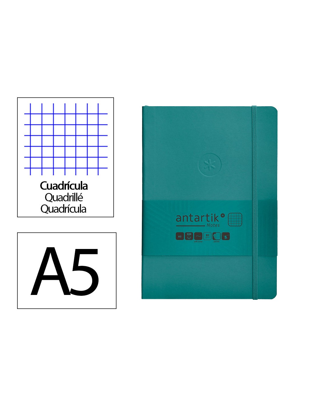 Cuaderno con gomilla antartik notes tapa blanda a5 hojas cuadricula verde aguamarina 80 hojas 80 gr fsc
