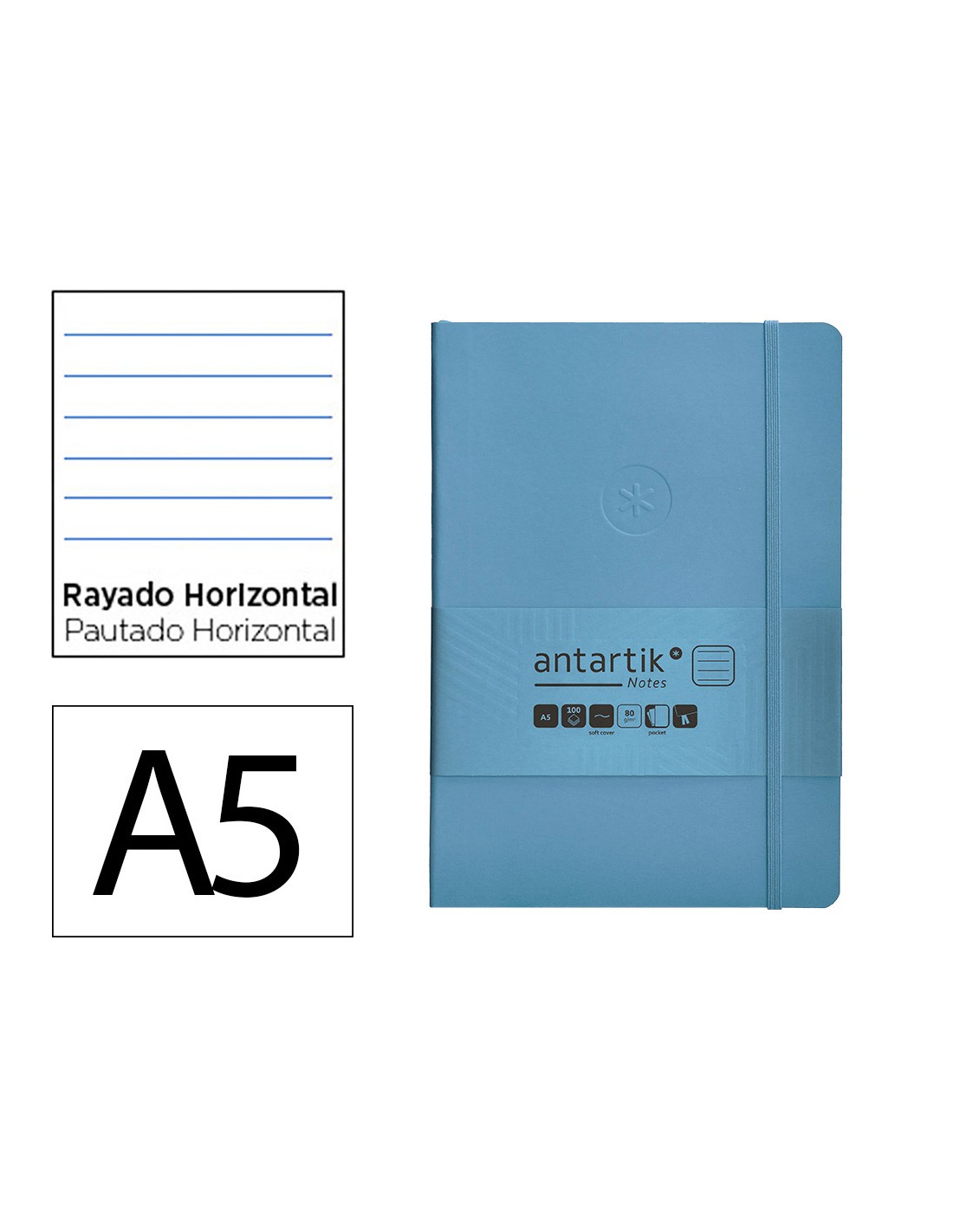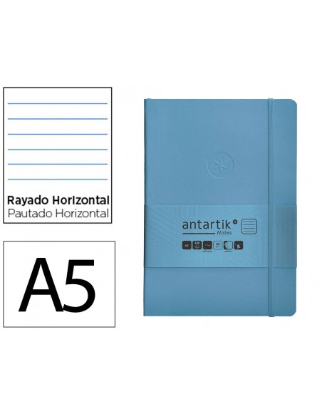 Cuaderno con gomilla antartik notes tapa blanda a5 hojas rayas azul claro 80 hojas 80 gr fsc