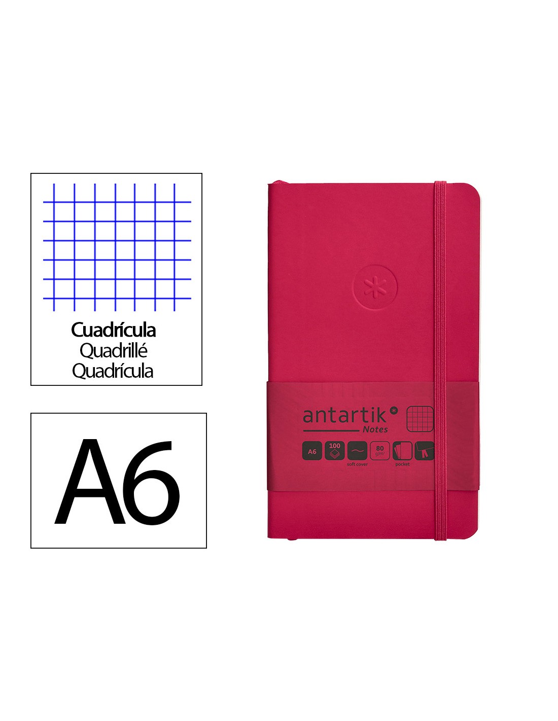 Cuaderno con gomilla antartik notes tapa blanda a6 cuadricula burdeos 100 hojas 80 gr fsc