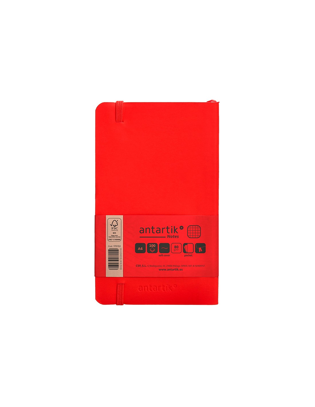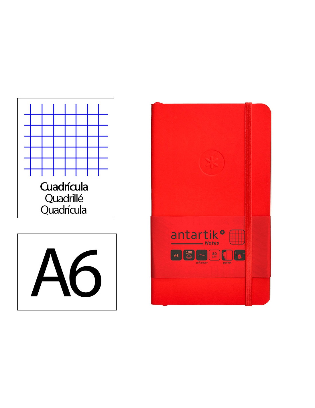 Cuaderno con gomilla antartik notes tapa blanda a6 cuadricula rojo 100 hojas 80 gr fsc