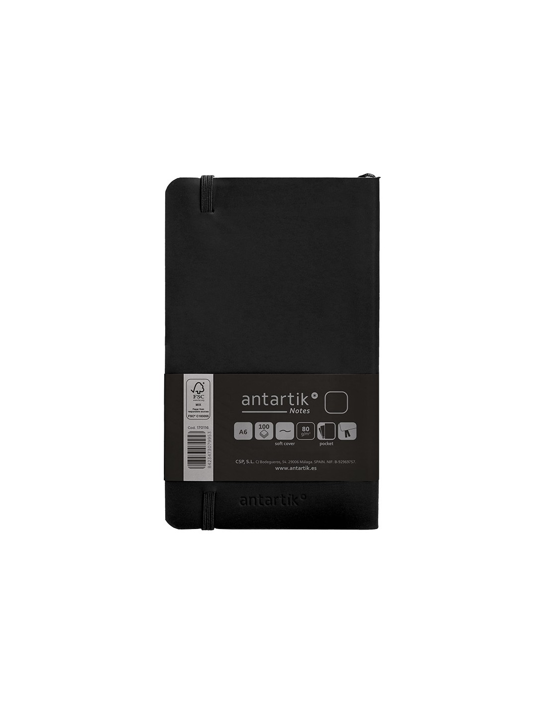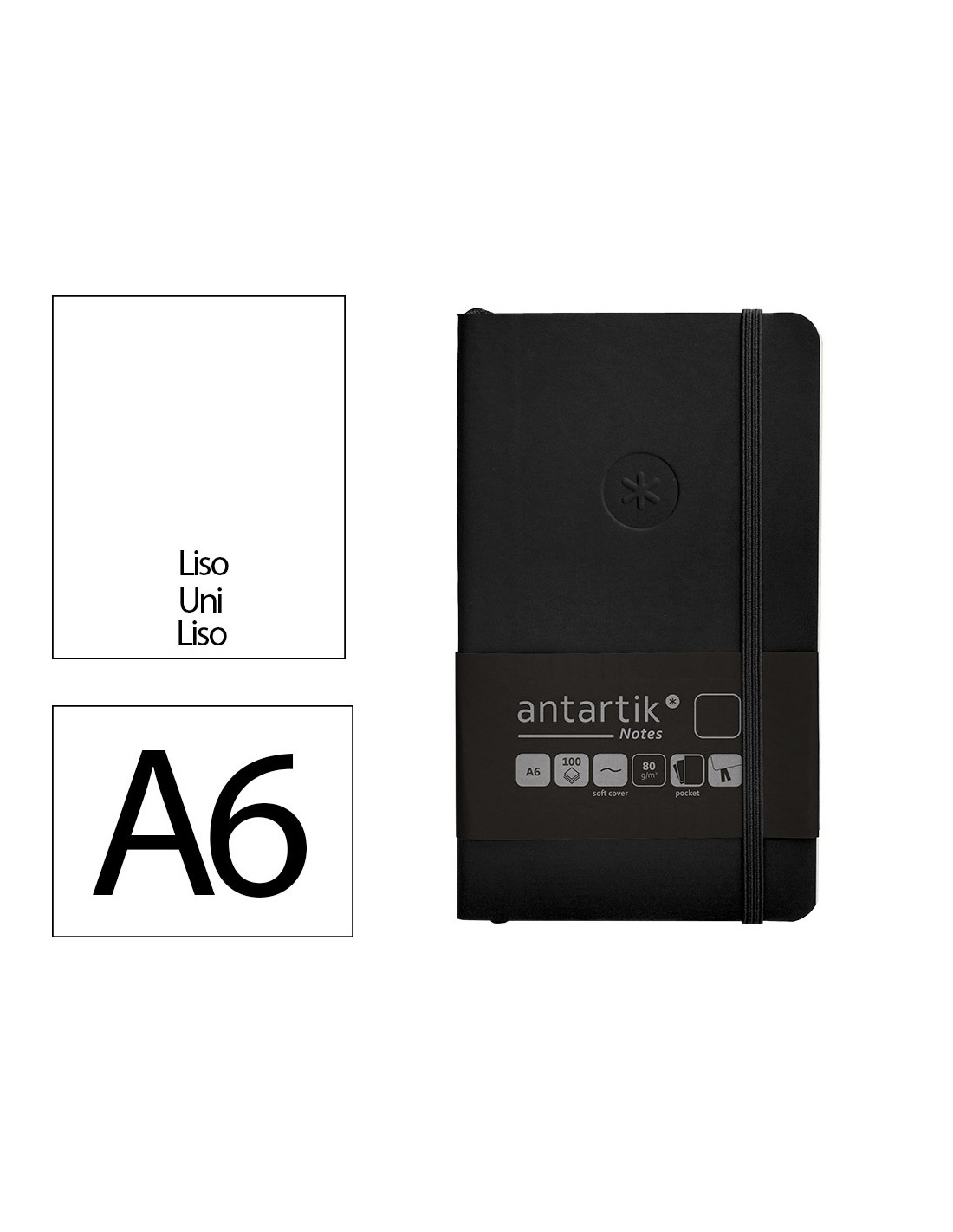 Cuaderno con gomilla antartik notes tapa blanda a6 hojas lisas negro 100 hojas 80 gr fsc