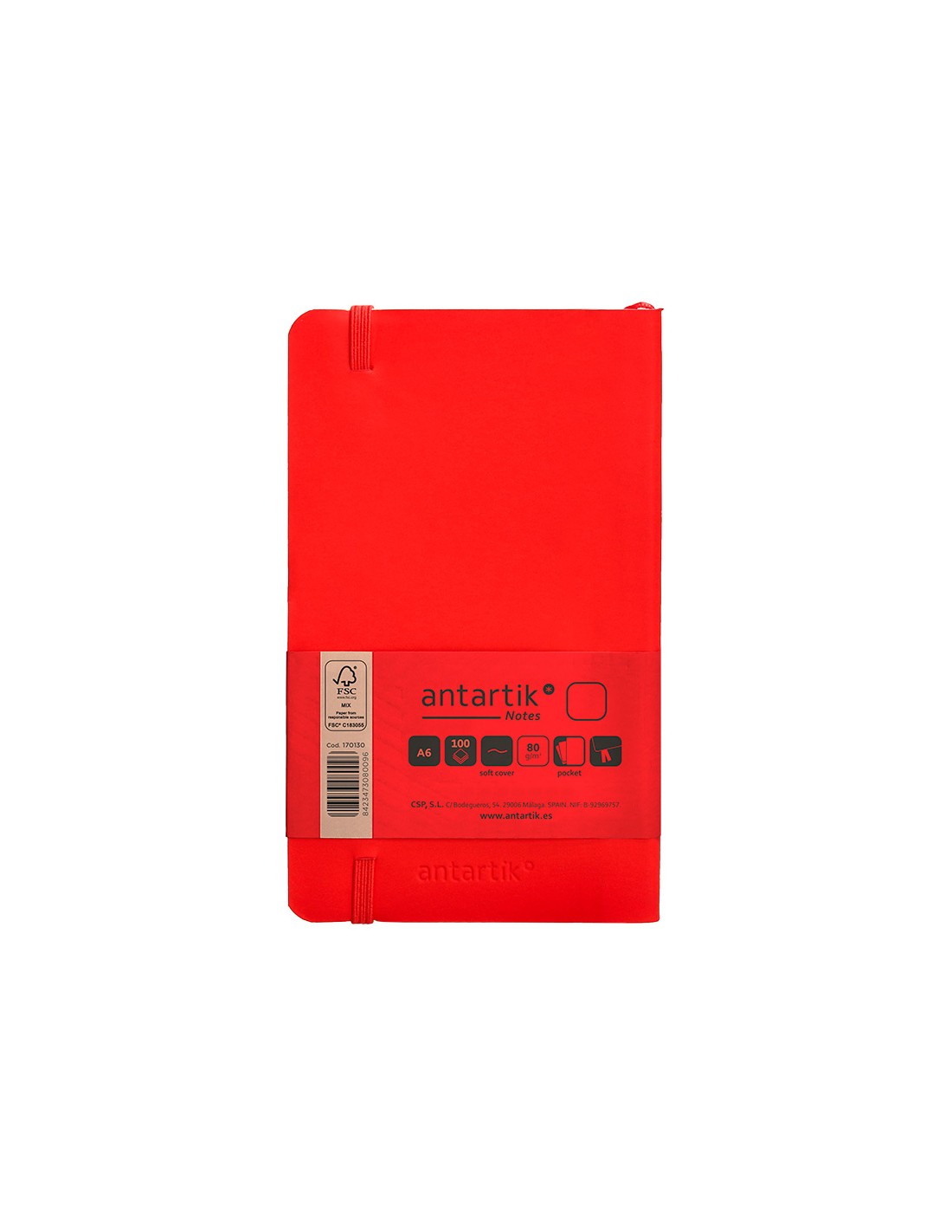 Cuaderno con gomilla antartik notes tapa blanda a6 hojas lisas rojo 100 hojas 80 gr fsc