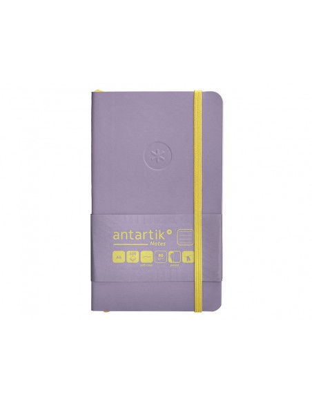 Cuaderno con gomilla antartik notes tapa blanda a6 rayas morado y amarillo 100 hojas 80 gr fsc