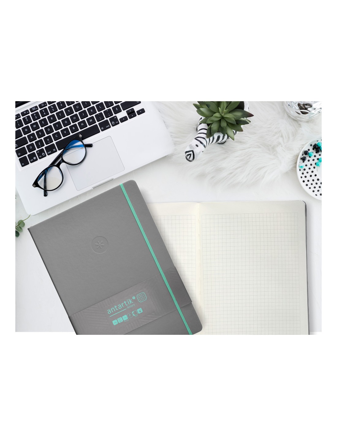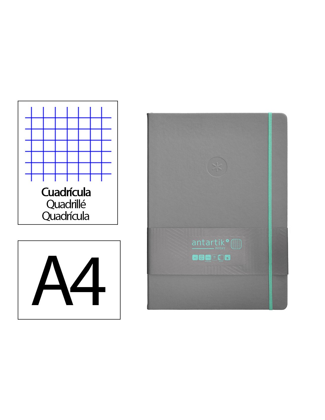 Cuaderno con gomilla antartik notes tapa dura a4 hojas cuadricula gris y turquesa 100 hojas 80 gr fsc