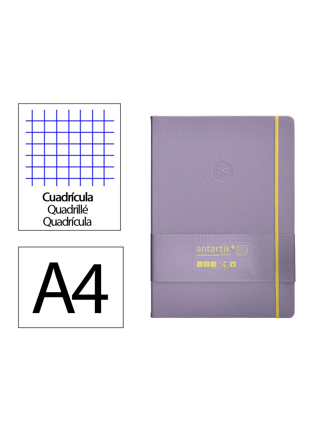 Cuaderno con gomilla antartik notes tapa dura a4 hojas cuadricula morado y amarillo 100 hojas 80 gr fsc