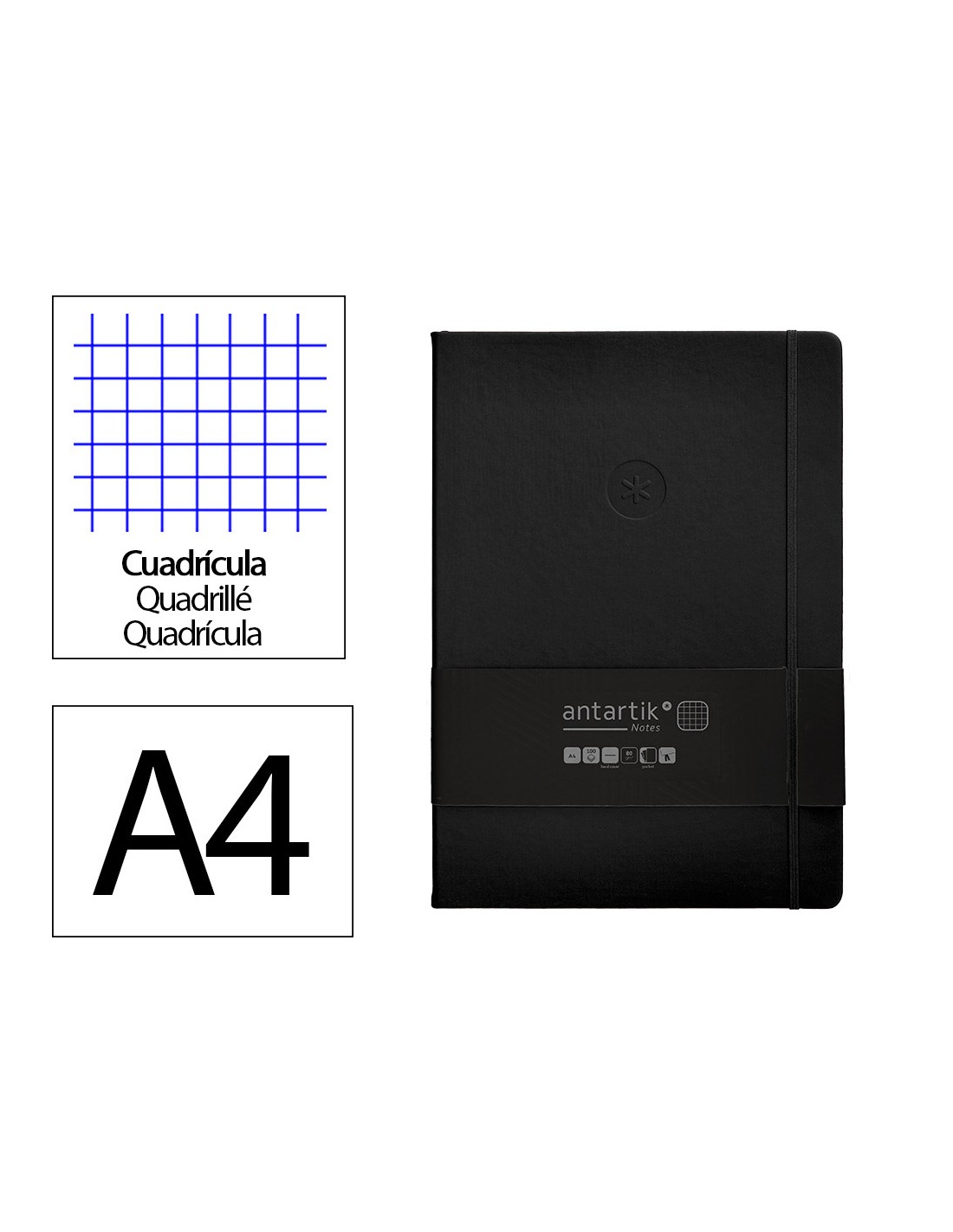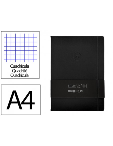 Cuaderno con gomilla antartik notes tapa dura a4 hojas cuadricula negro 100 hojas 80 gr fsc