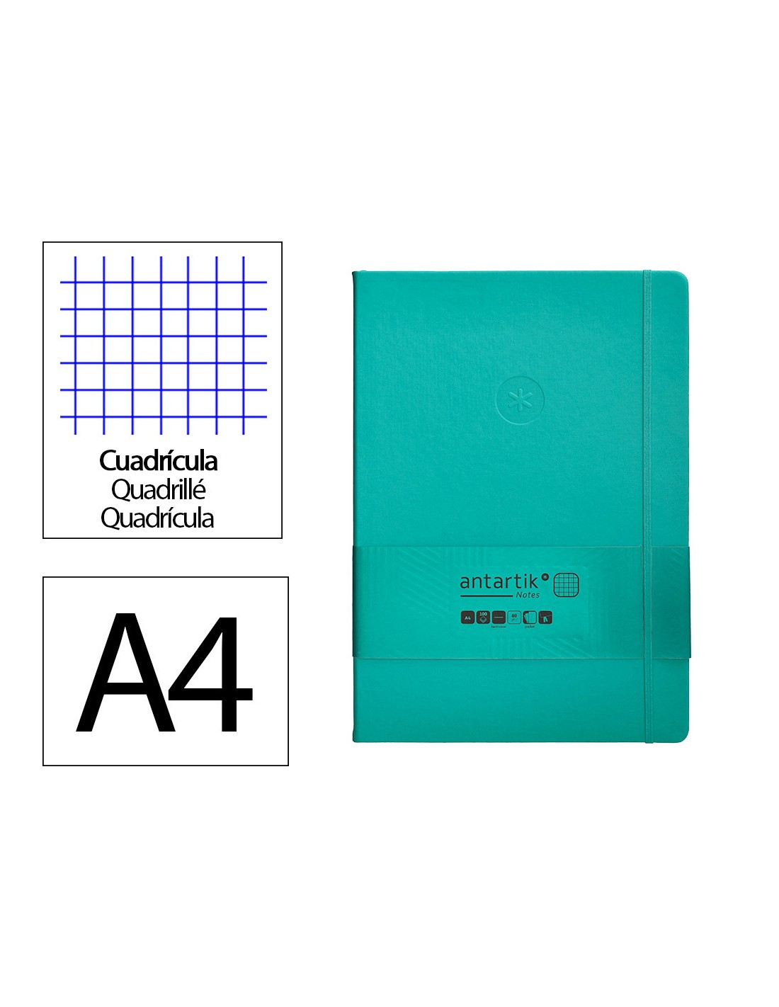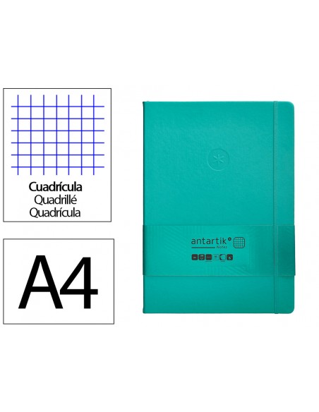 Cuaderno con gomilla antartik notes tapa dura a4 hojas cuadricula turquesa 100 hojas 80 gr fsc