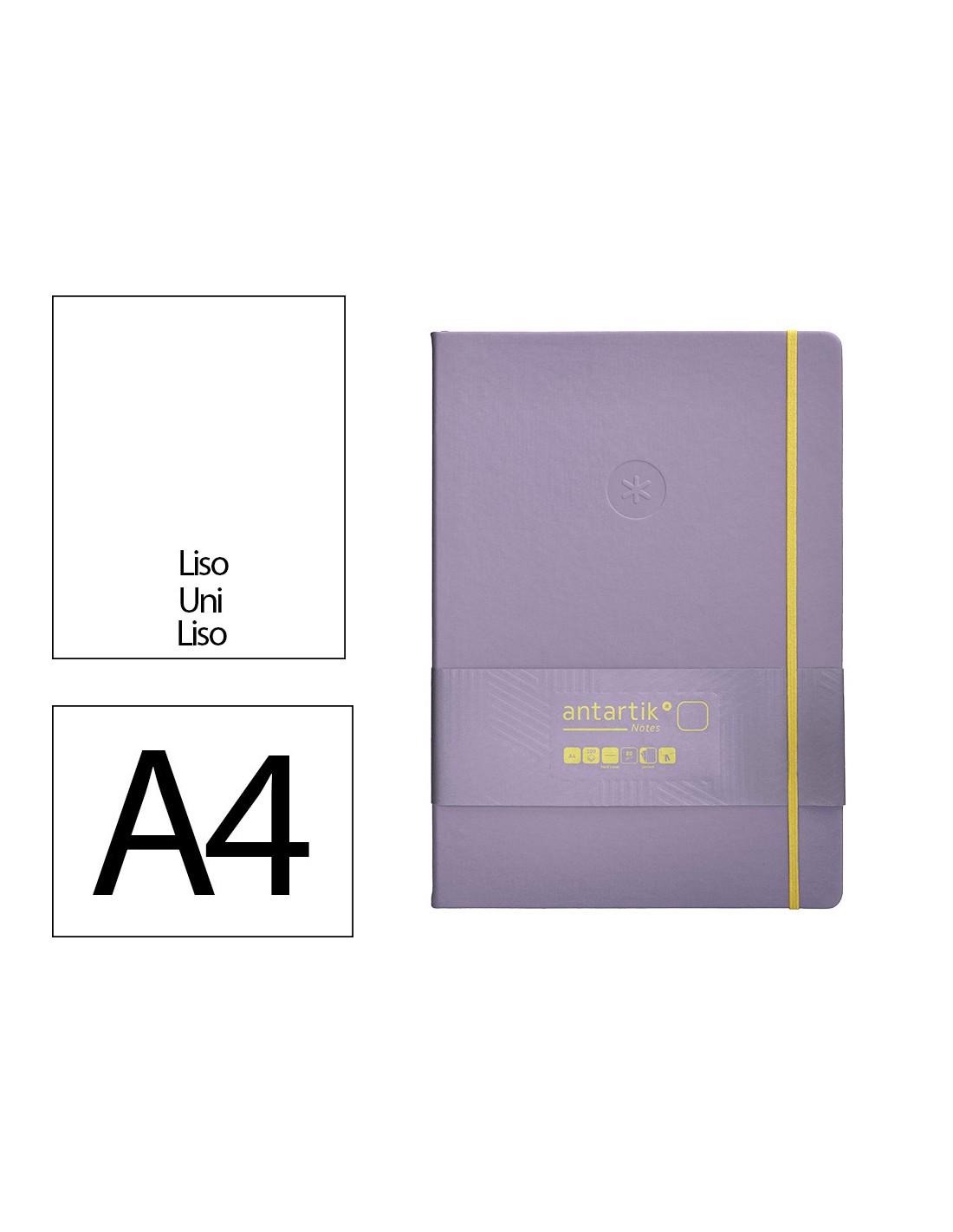 Cuaderno con gomilla antartik notes tapa dura a4 hojas lisas morado y amarillo 100 hojas 80 gr fsc