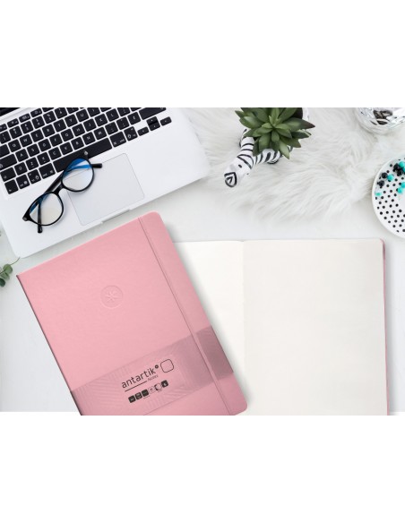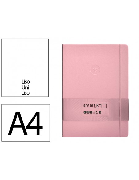 Cuaderno con gomilla antartik notes tapa dura a4 hojas lisas rosa pastel 100 hojas 80 gr fsc