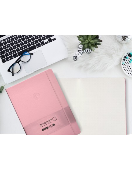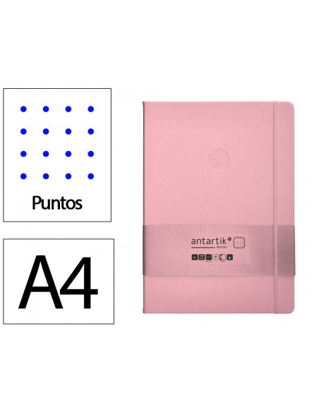 Cuaderno con gomilla antartik notes tapa dura a4 hojas puntos rosa pastel 100 hojas 80 gr fsc