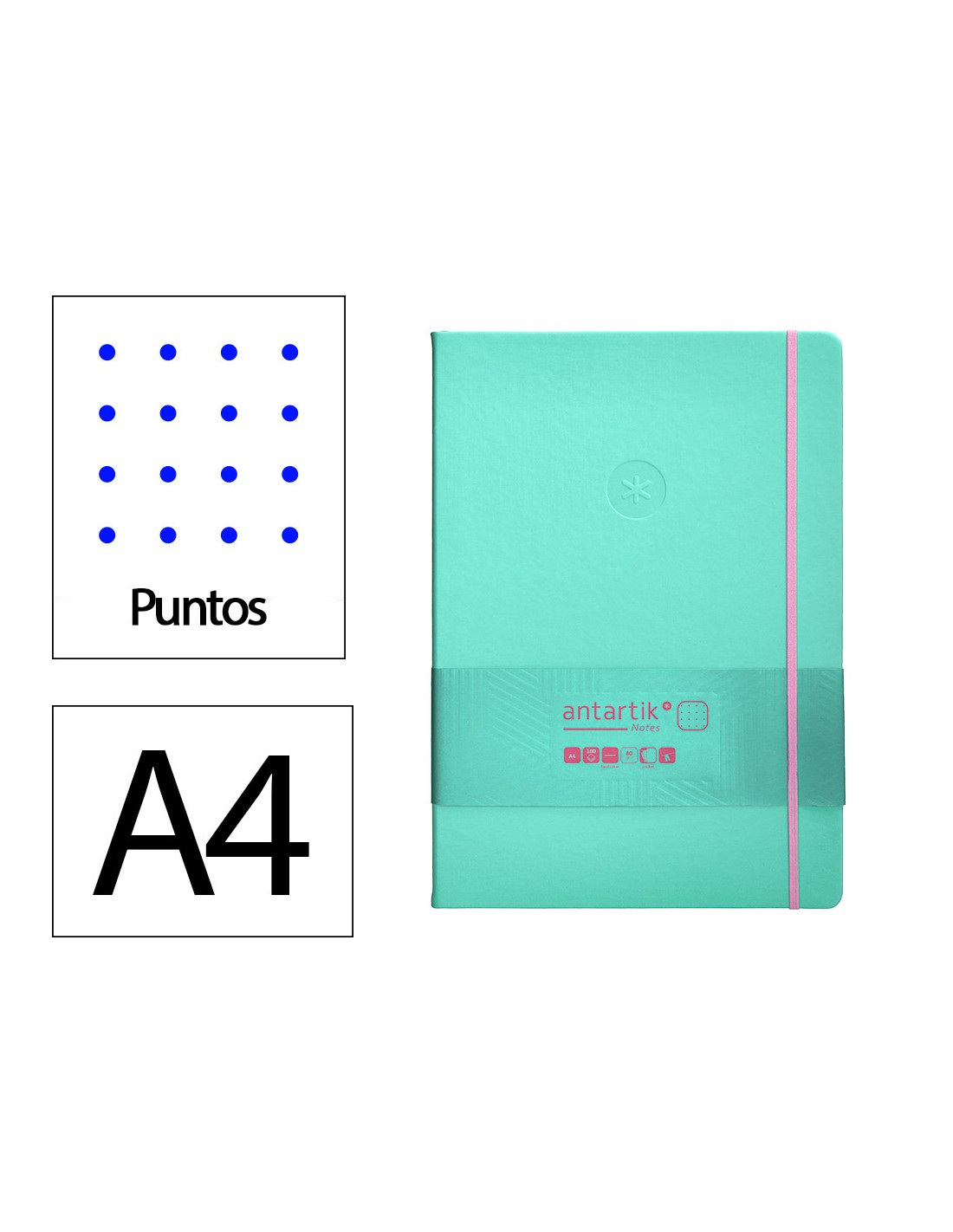 Cuaderno con gomilla antartik notes tapa dura a4 hojas puntos rosa y turquesa 100 hojas 80 gr fsc