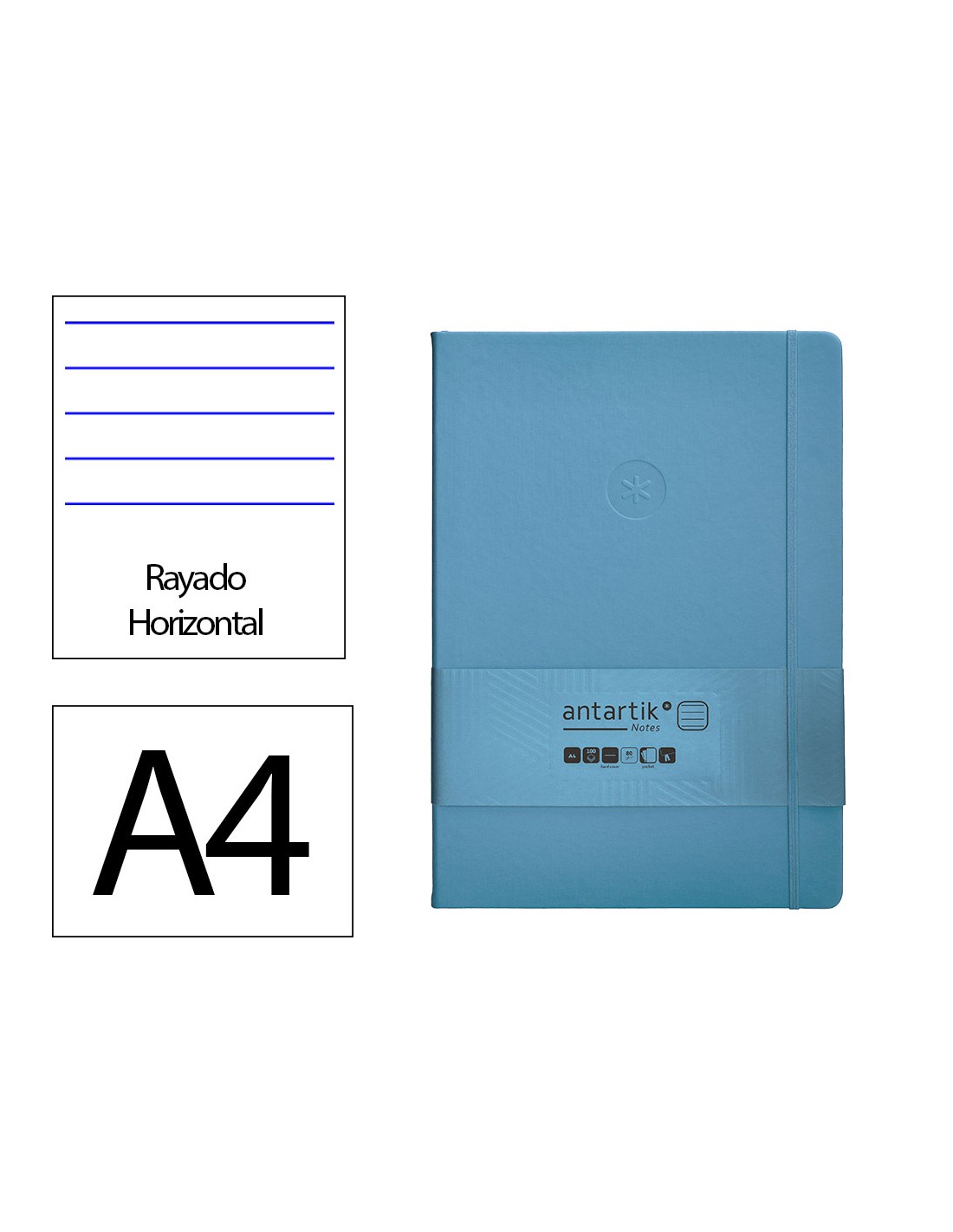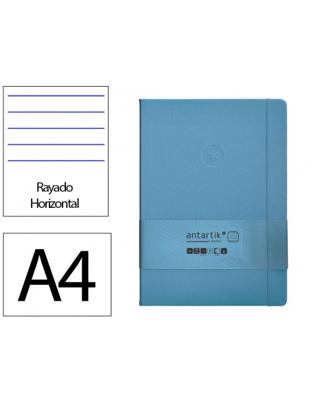 Cuaderno con gomilla antartik notes tapa dura a4 hojas rayas azul claro 100 hojas 80 gr fsc
