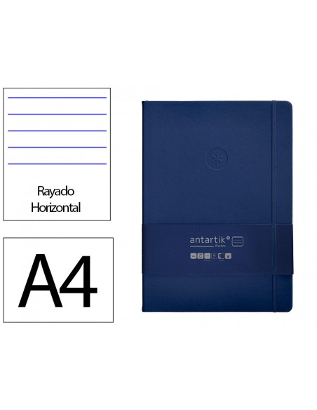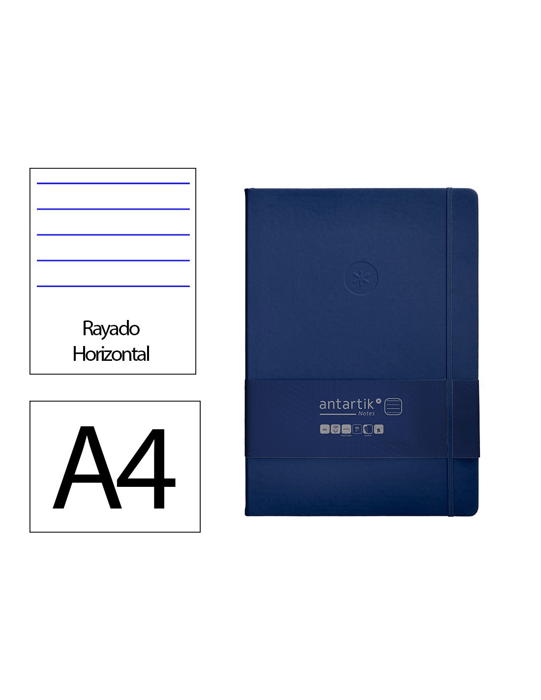 Cuaderno con gomilla antartik notes tapa dura a4 hojas rayas azul marino 100 hojas 80 gr fsc
