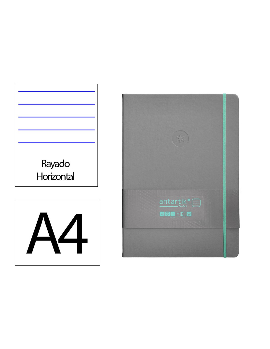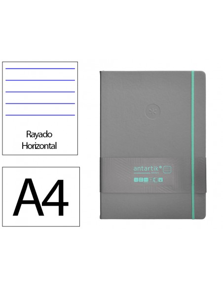 Cuaderno con gomilla antartik notes tapa dura a4 hojas rayas gris y turquesa 100 hojas 80 gr fsc