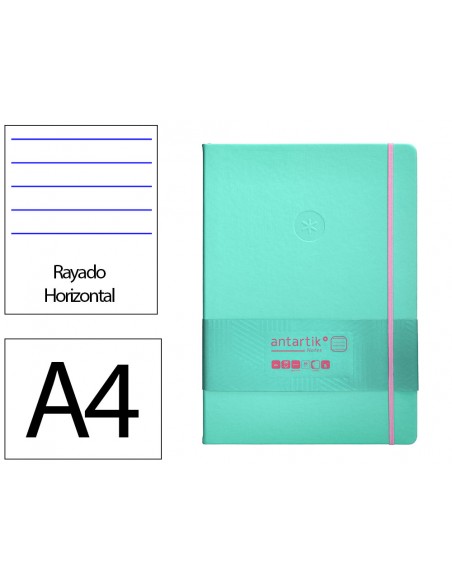 Cuaderno con gomilla antartik notes tapa dura a4 hojas rayas rosa y turquesa 100 hojas 80 gr fsc