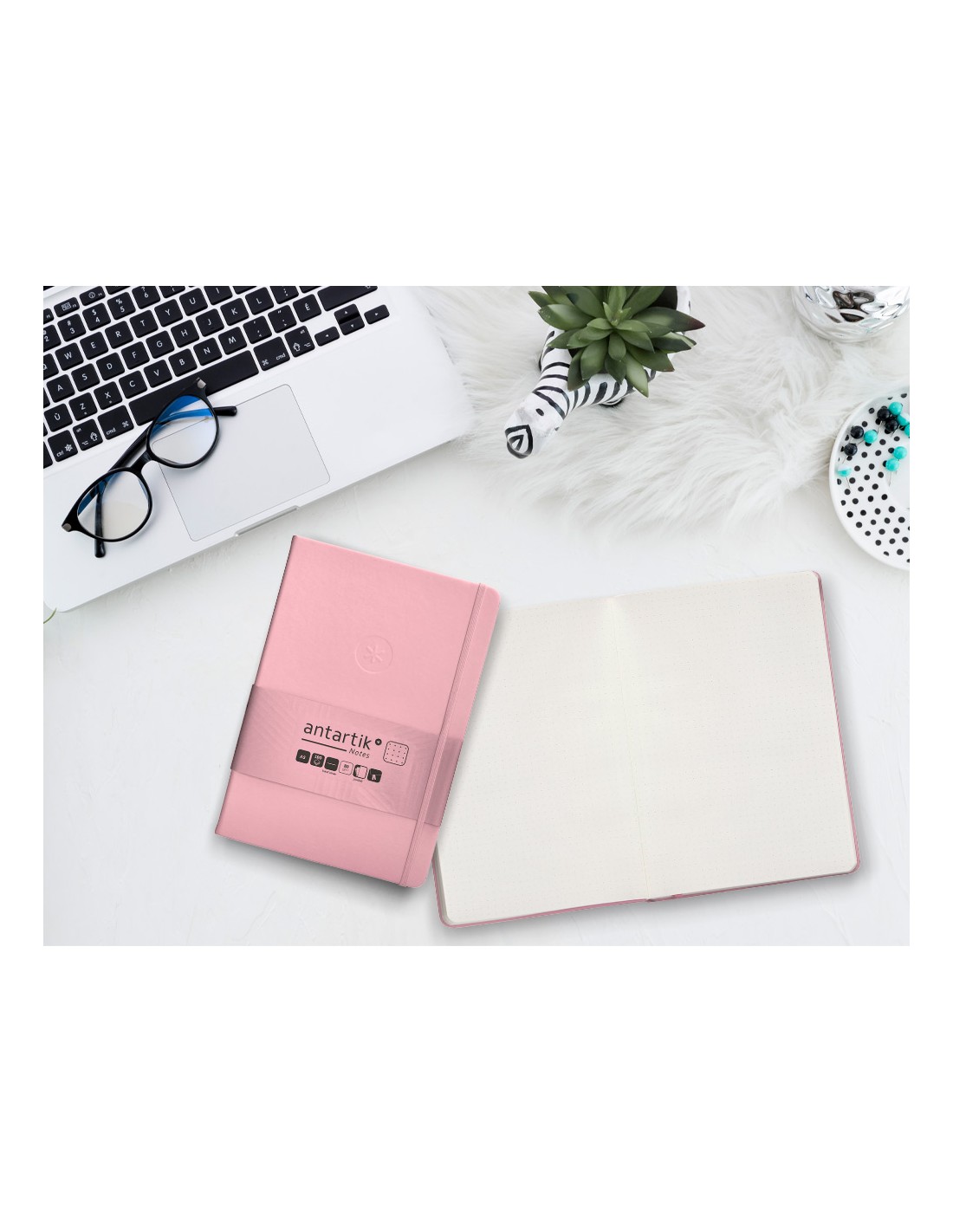 Cuaderno con gomilla antartik notes tapa dura a5 hojas puntos rosa pastel 100 hojas 80 gr fsc