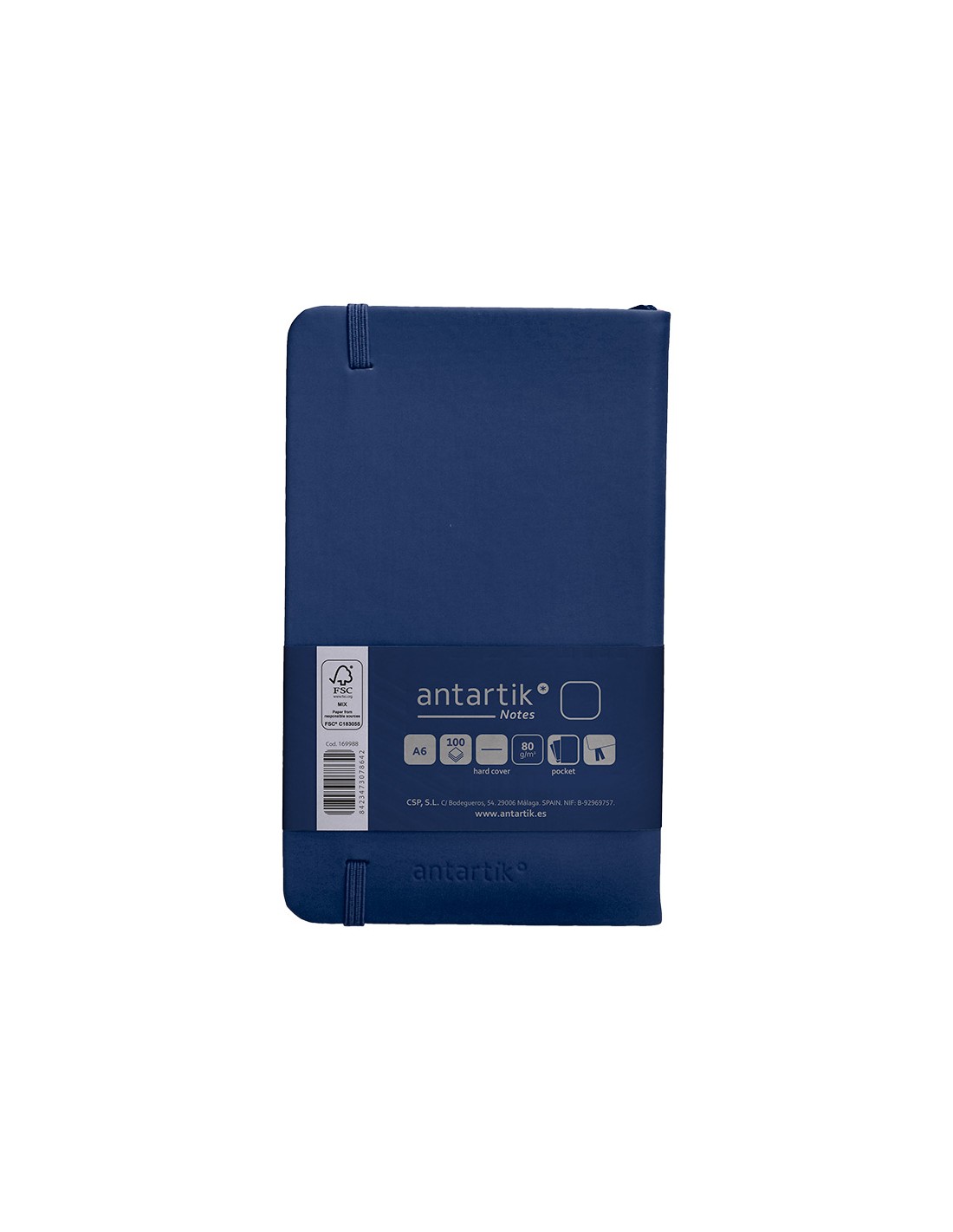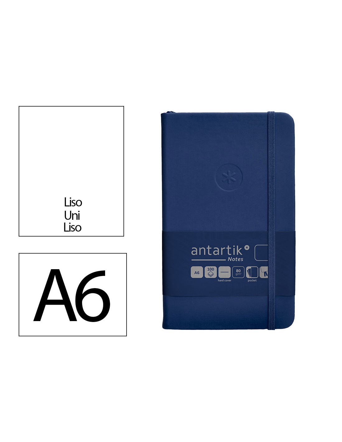 Cuaderno con gomilla antartik notes tapa dura a6 hojas lisas azul marino 100 hojas 80 gr fsc