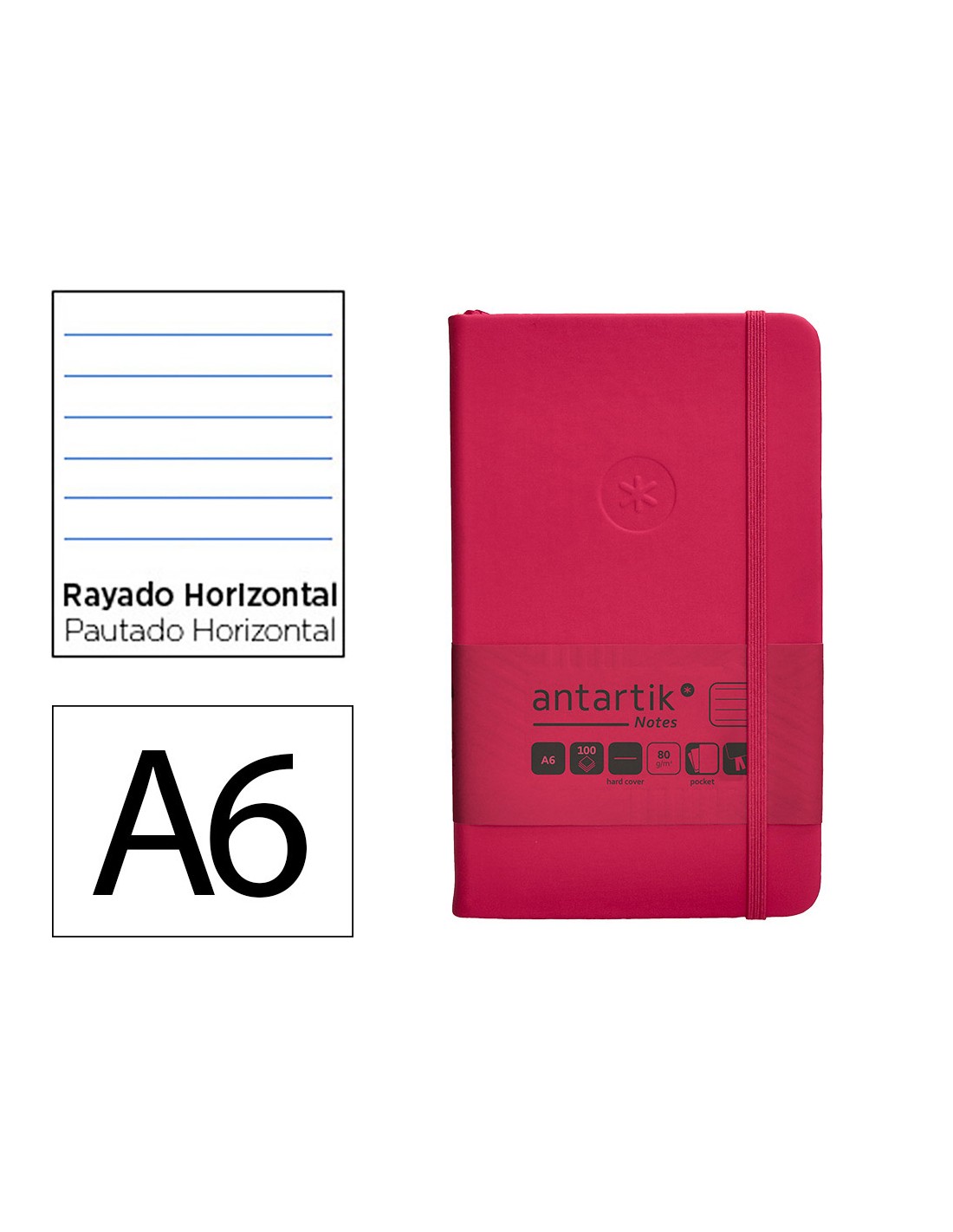 Cuaderno con gomilla antartik notes tapa dura a6 hojas rayas burdeos 100 hojas 80 gr fsc