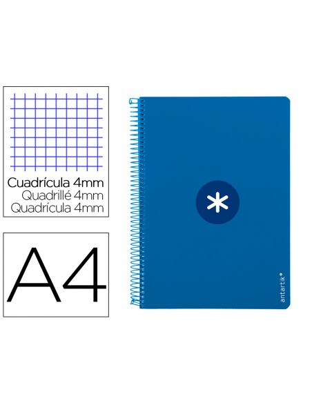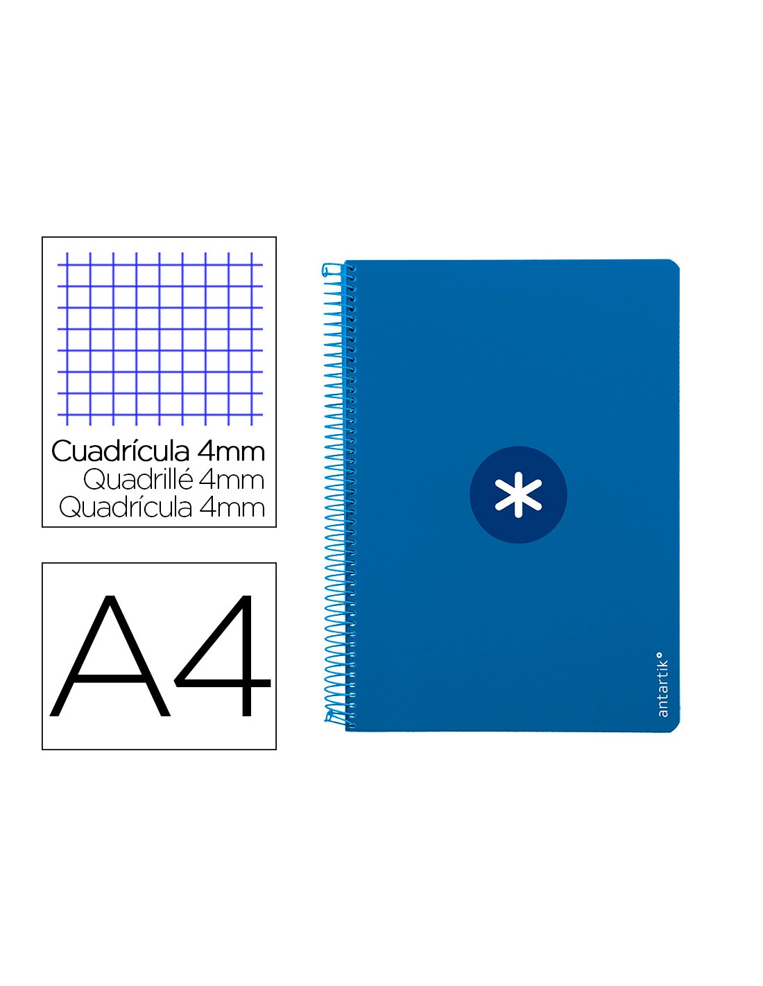 Cuaderno espiral a4 antartik tapa dura 80h 90gr cuadro 4mm con margen color azul oscuro