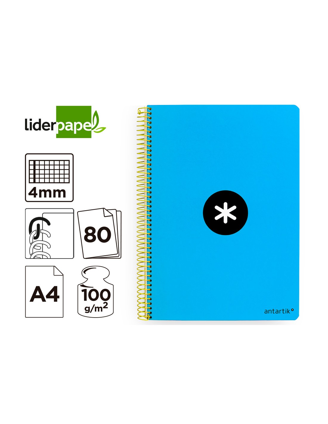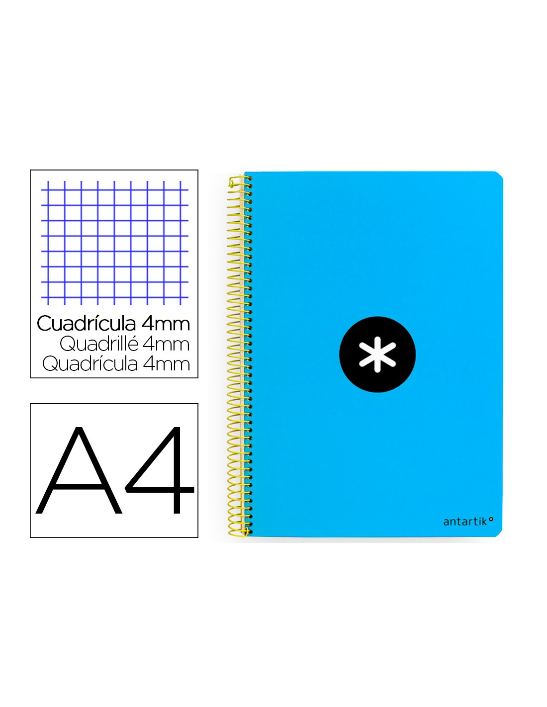 Cuaderno espiral a4 antartik tapa dura 80h 90gr cuadro 4mm con margen color azul