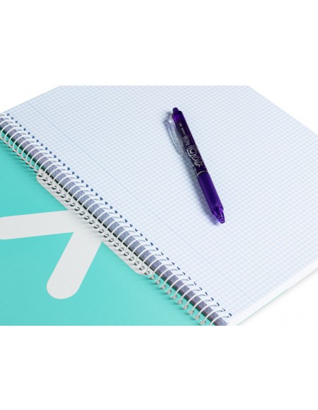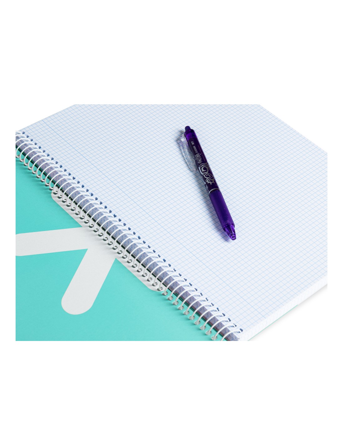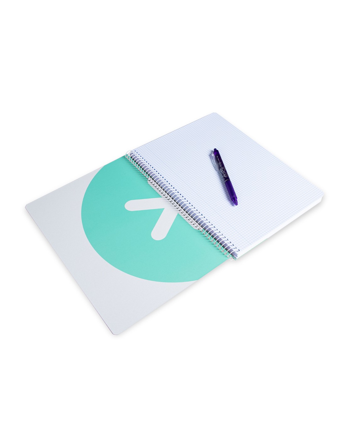 El cuaderno de más alta gama del mercado exclusivo diseño, características inigualables, un cuaderno sin precedentes que se distingue por la suavidad y blancura de su papel, y además hace la escritura muy fluida. Tapa dura de cartoncillo de 800 g/m² con doble encolado, impresa y plastificada mate extrasuave. Interior de portada impresa y plastificada mate. Gran resistencia y rigidez. Papel extrablanco de 100 g/m², ultrasuave que hace la escritura mucho más fluida. La tinta no traspasa. Espiral nylonizada de colores. Coil-lock.